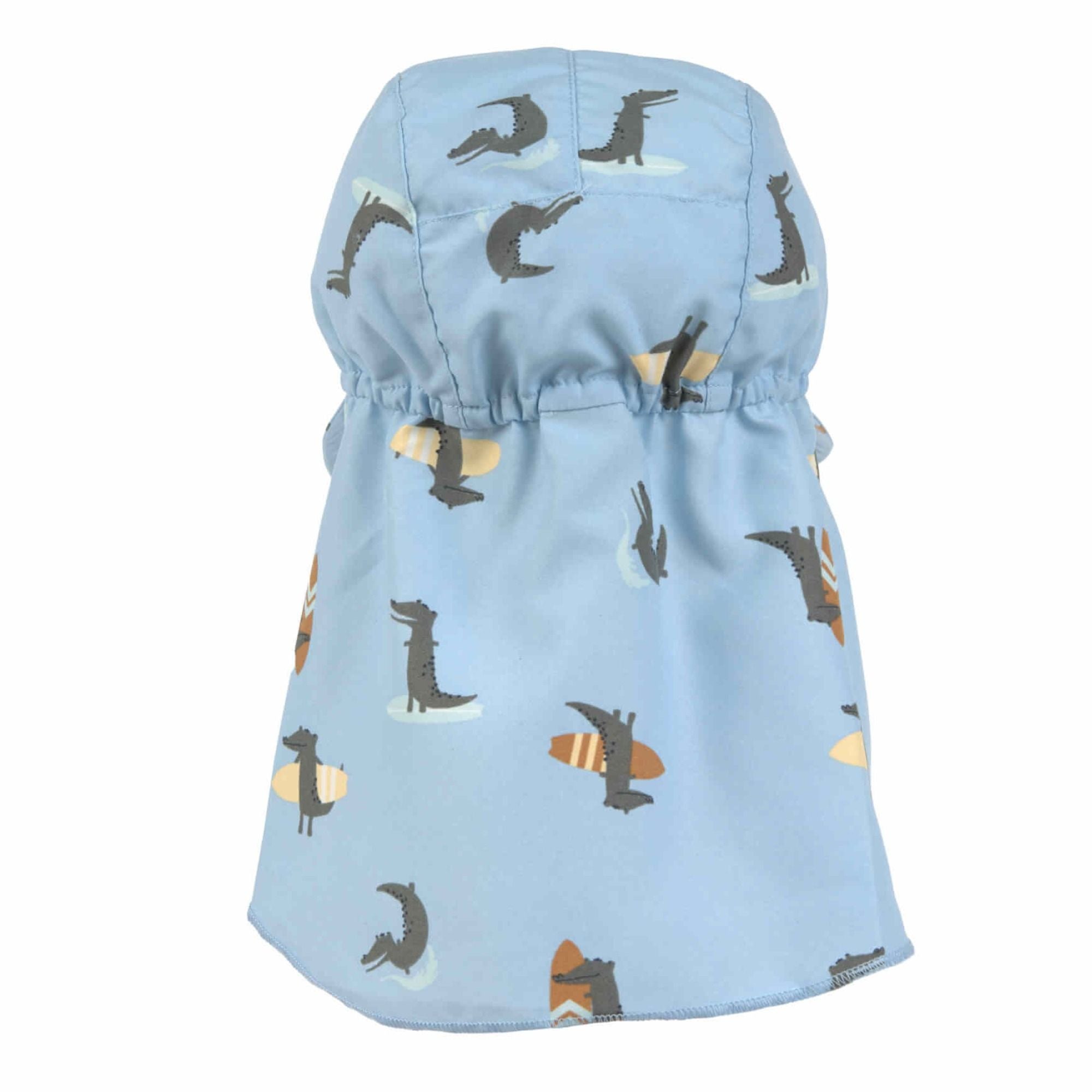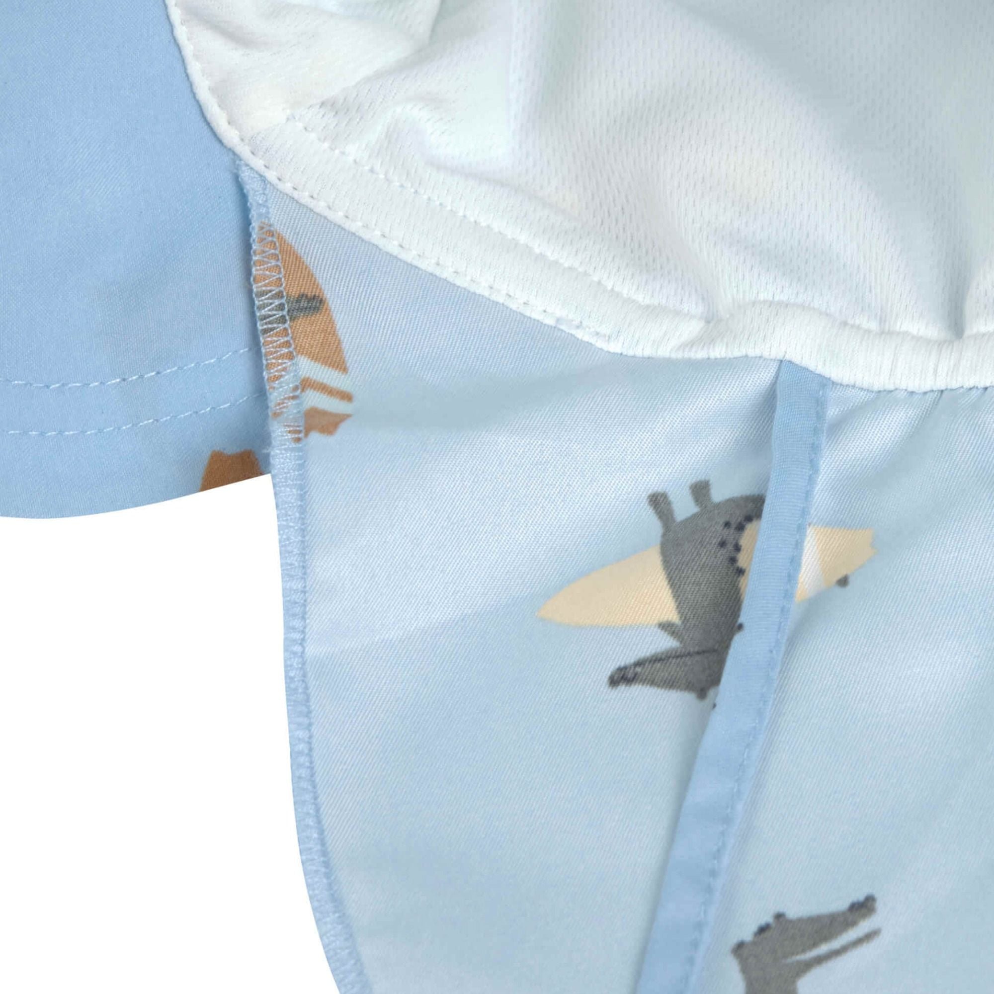 Die Schildkappe mit extra langem Nackenschutz und UV-Schutz 80 bietet optimalen Schutz für Babys und Kleinkinder. Kopf, Nacken, Augen und Ohren werden zuverlässig vor der Sonne geschützt, sowohl an Land als auch im Wasser in Kombination mit Sonnencreme und der passenden UV-Bekleidung. Das atmungsaktive, schnelltrocknende Material und das feuchtigkeitsregulierende Futter sorgen für ein angenehmes Tragegefühl, indem Feuchtigkeit direkt nach außen geleitet wird. Eine Kordel zum Binden am Kinn sorgt für sicheren Halt, während das niedlichen  Designs für extra Sommerspaß sorgt.