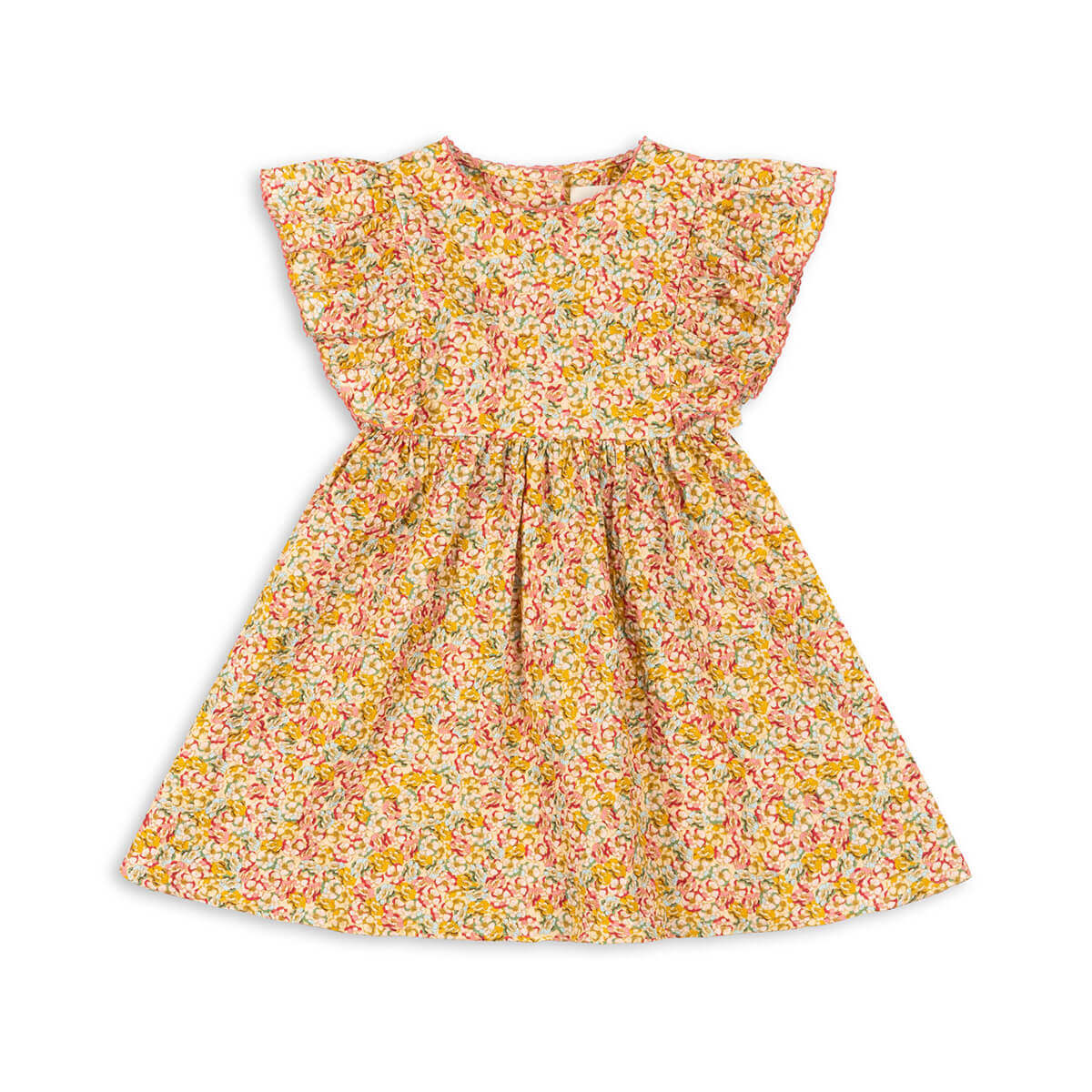 Das luftig leichte Kleid Elin ist aus Bio-Baumwolle hergestellt. Es ist in einer ausgestellten Passform mit gerüschten Ärmeln geschnitten und ist ein sommerliches Kleidungsstück für Ihr Kind.