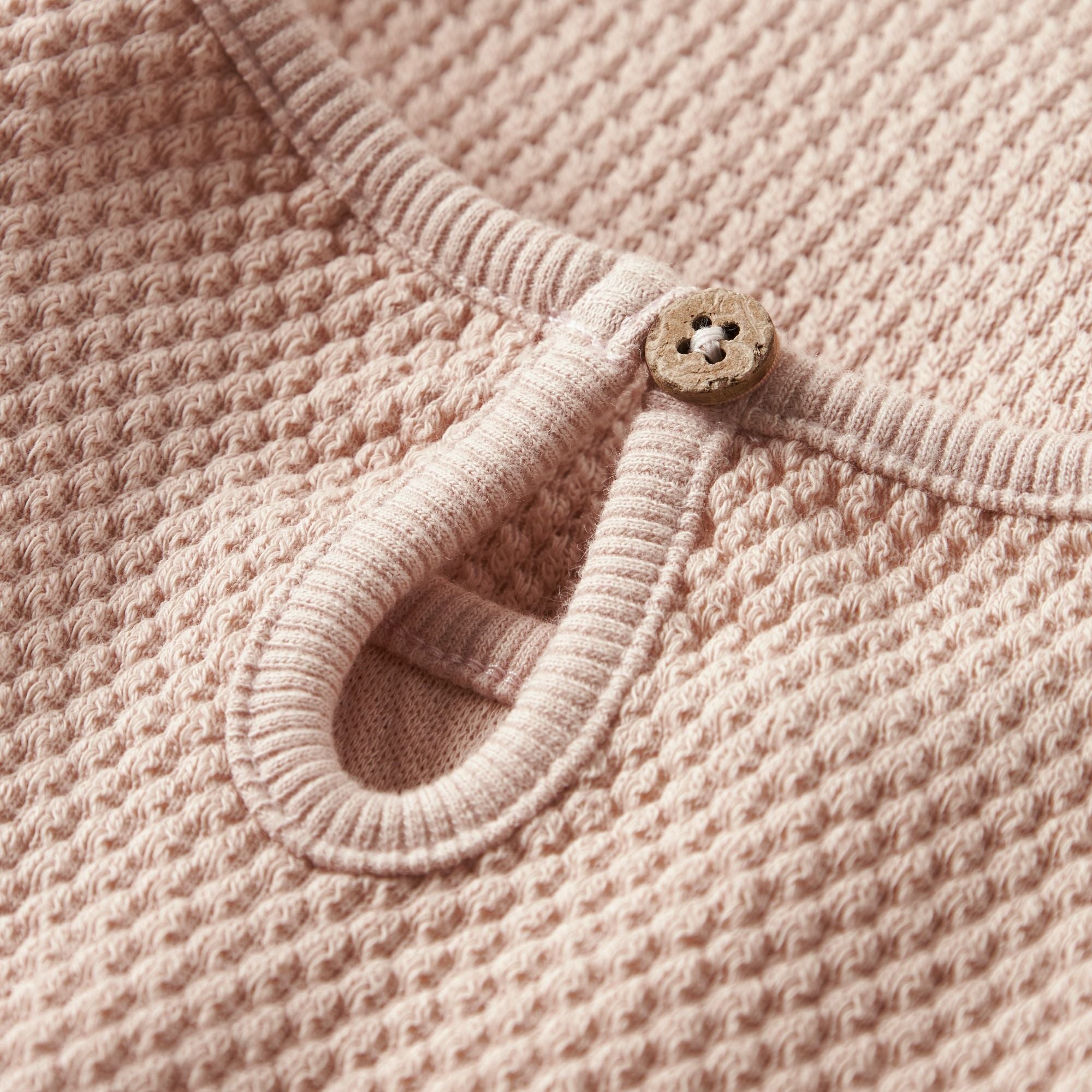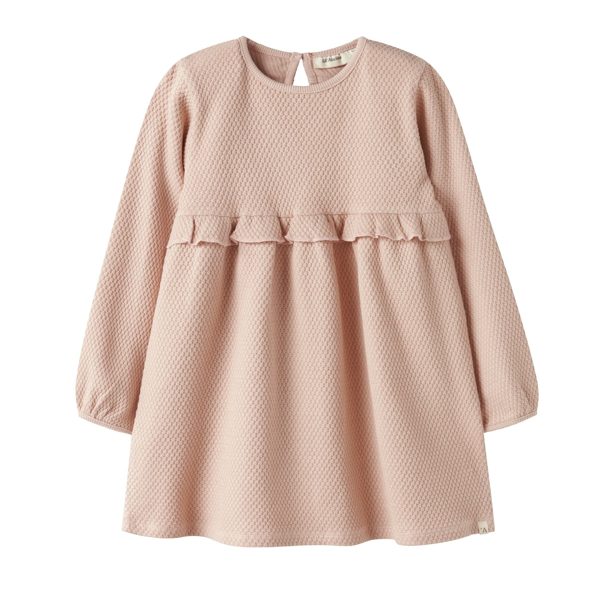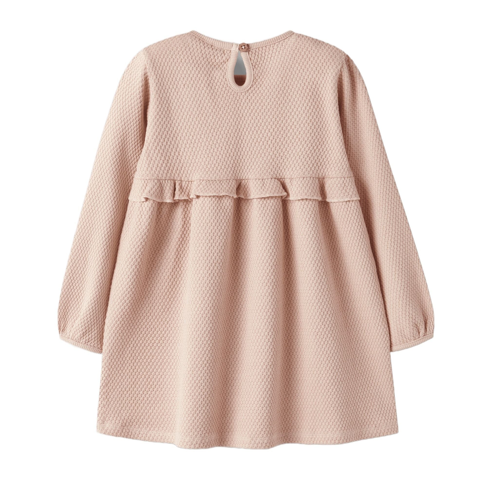 Ein süßes Wohlfühlkleid für jeden Tag: Dieses langärmlige Kinderkleid aus weicher Bio-Baumwolle begeistert mit seiner strukturierten Jacquardoptik und liebevollen Details. Der sanfte Stoff ist angenehm auf der Haut und bietet viel Bewegungsfreiheit – ideal für kleine Abenteurerinnen. Die zarte Rüsche auf Brusthöhe verleiht dem Kleid eine verspielte Note, während der Knopfverschluss am Rücken das An- und Ausziehen erleichtert. Ein charmantes Basic für stilvolle Alltagsmomente – nachhaltig, bequem und wunderschön!