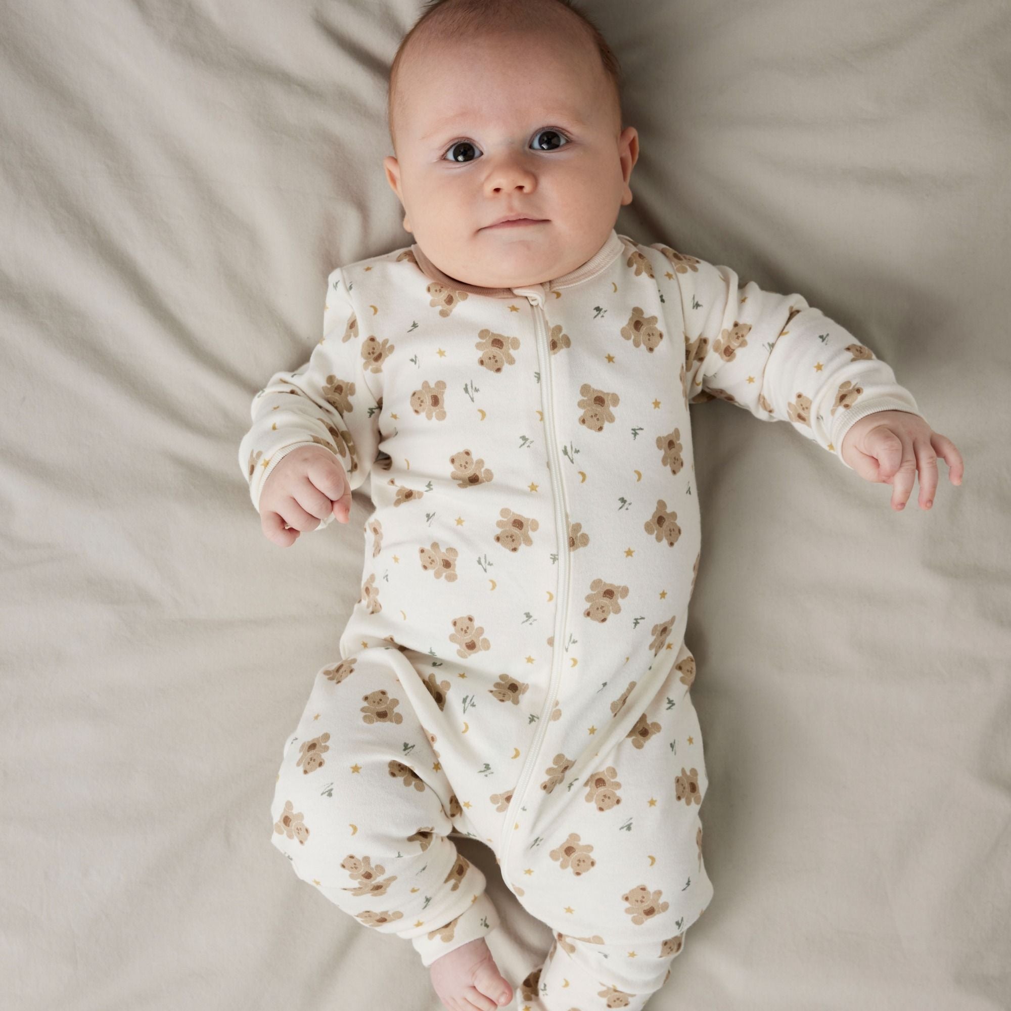 Dieser einteilige Schlafanzug aus weicher Bio-Baumwolle sorgt für ein angenehmes Tragegefühl und eine ruhige Nacht. Das Interlock-Gewebe bietet eine glatte Oberfläche, hohe Dehnbarkeit und maximalen Komfort. Der praktische Reißverschluss erleichtert das An- und Ausziehen, während ein integrierter Kinnschutz die empfindliche Haut schützt. Umschlagbare Bündchen halten kleine Füße warm und sorgen für zusätzlichen Wohlfühlfaktor. Im praktischen 2er-Pack ist dieser Schlafanzug die ideale Wahl für erholsame Nächte.