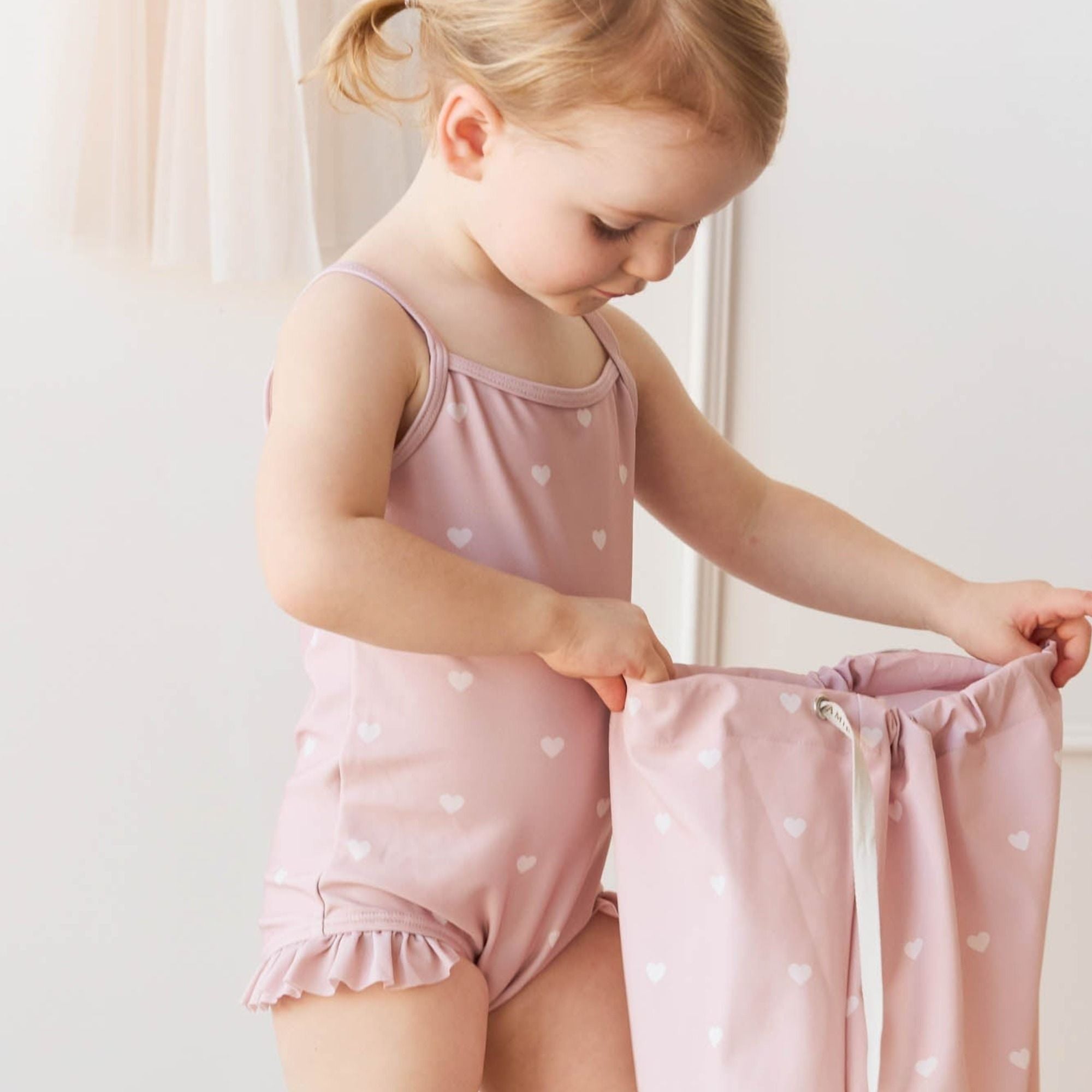 Dieser süße Kinder-Badeanzug kombiniert Komfort mit einem verspielten Design. Hergestellt aus recyceltem Polyester, ist der Badeanzug angenehm weich und strapazierfähig für stundenlangen Spaß im Wasser. Die schmalen Träger sorgen für eine bequeme Passform, während die Rüschen am Beinausschnitt dem Badeanzug einen charmanten Touch verleihen. Perfekt für den Strand oder das Schwimmbad – dieser Badeanzug lässt jedes Kind stilvoll planschen!