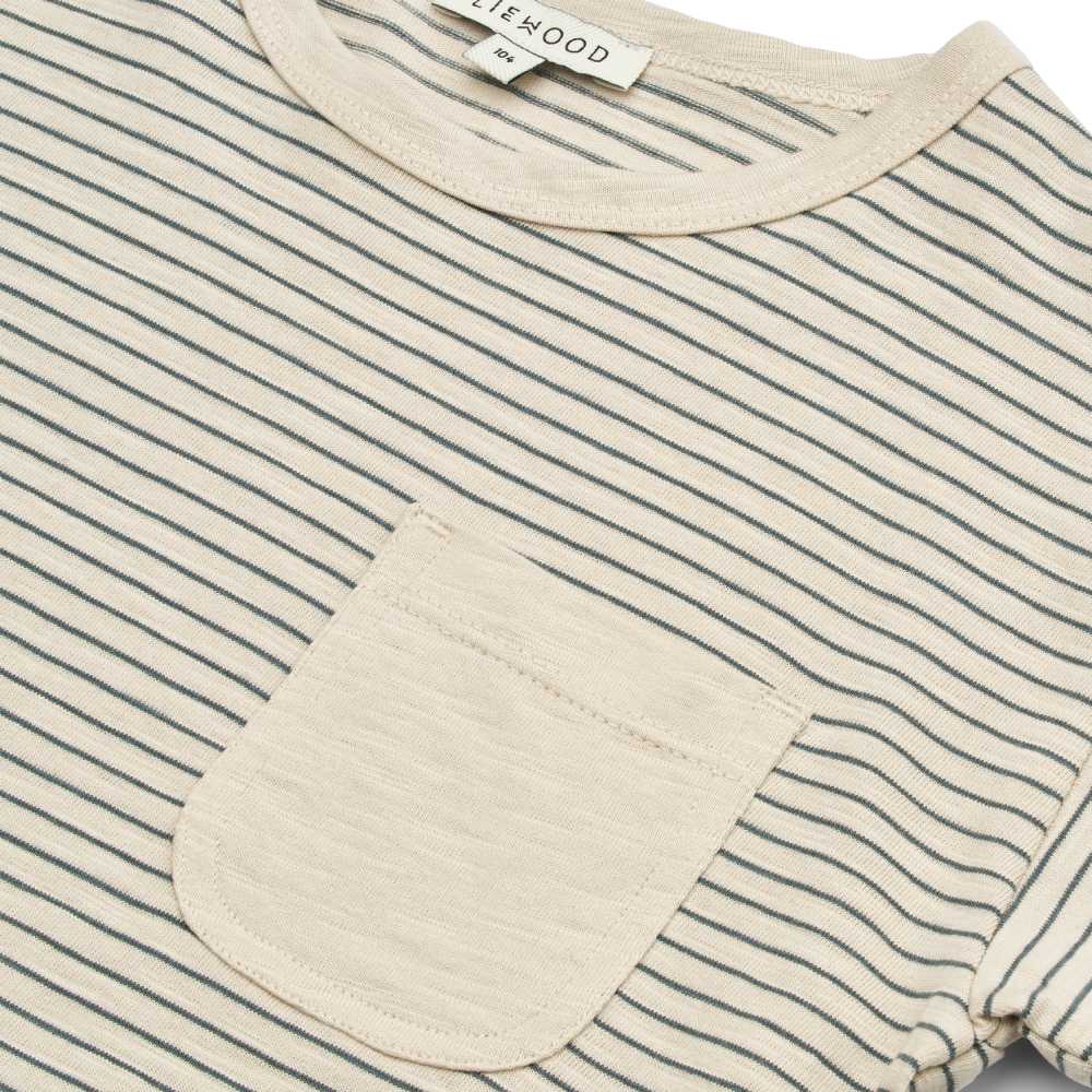 Lockeres T-Shirt aus Bio-Baumwolle mit Taschen Details auf der Brust. Das Shirt ist oversized geschnitten, damit das Kind sich gut bewegen und spielen kann. Das Shirt kann sehr eine Nummer größer gekauft werden und mitwachsen. Es ist zeitlos und ein wunderbares T-Shirt für jeden Tag im Jahr. Das T-Shirt ist zertifiziert.