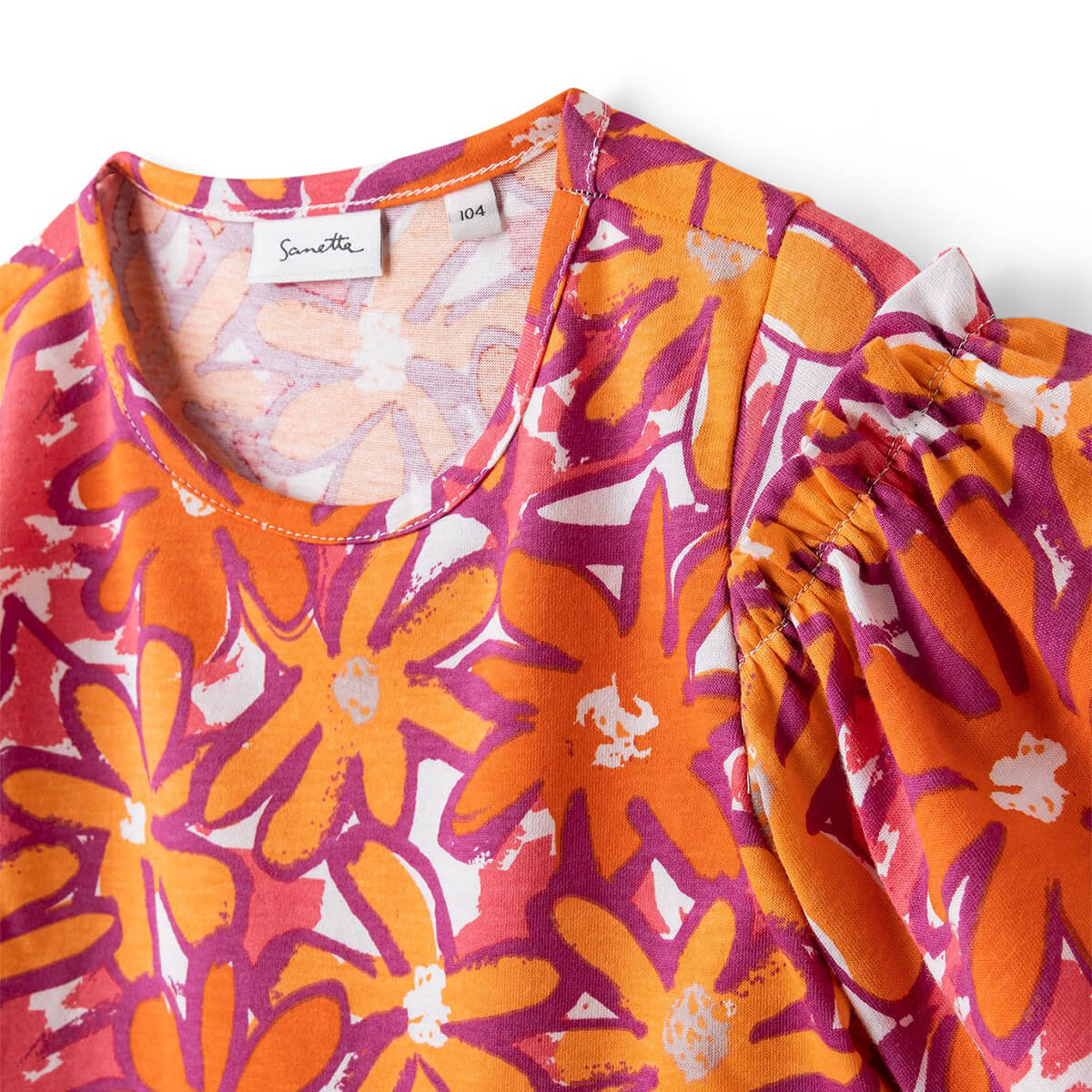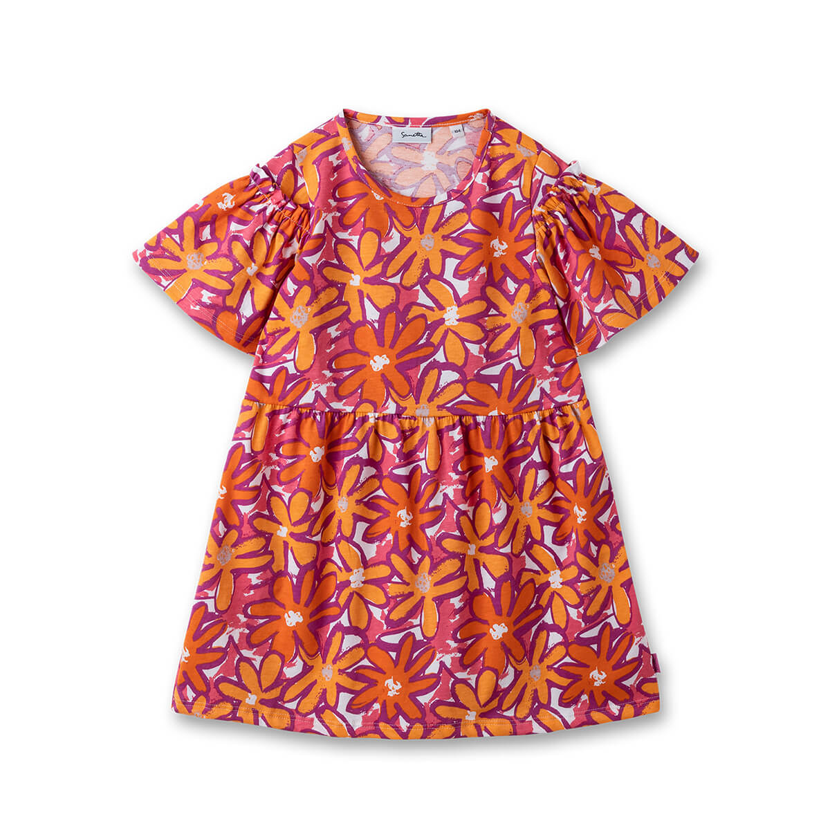 Das reizende Kleid von Sanetta ist mit einem sommerlichen Blumen-All-Over-Print und einer bezaubernden kleinen Rüsche an den Ärmeln gestaltet. Es ist in einer angenehmen leichten Single-Jersey Qualität aus 100% -Bio-Baumwolle hergestellt.