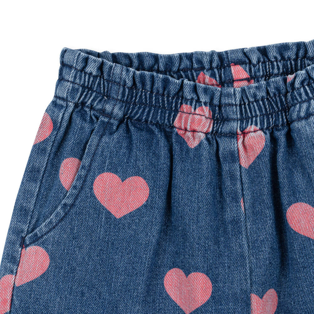 Die Jeanshose ist auf Bio-Baumwolle hergestellt. Der verspielte All-Over-Print ist das Highlight dieser Hose sowie der geraffte und elastische Bund.