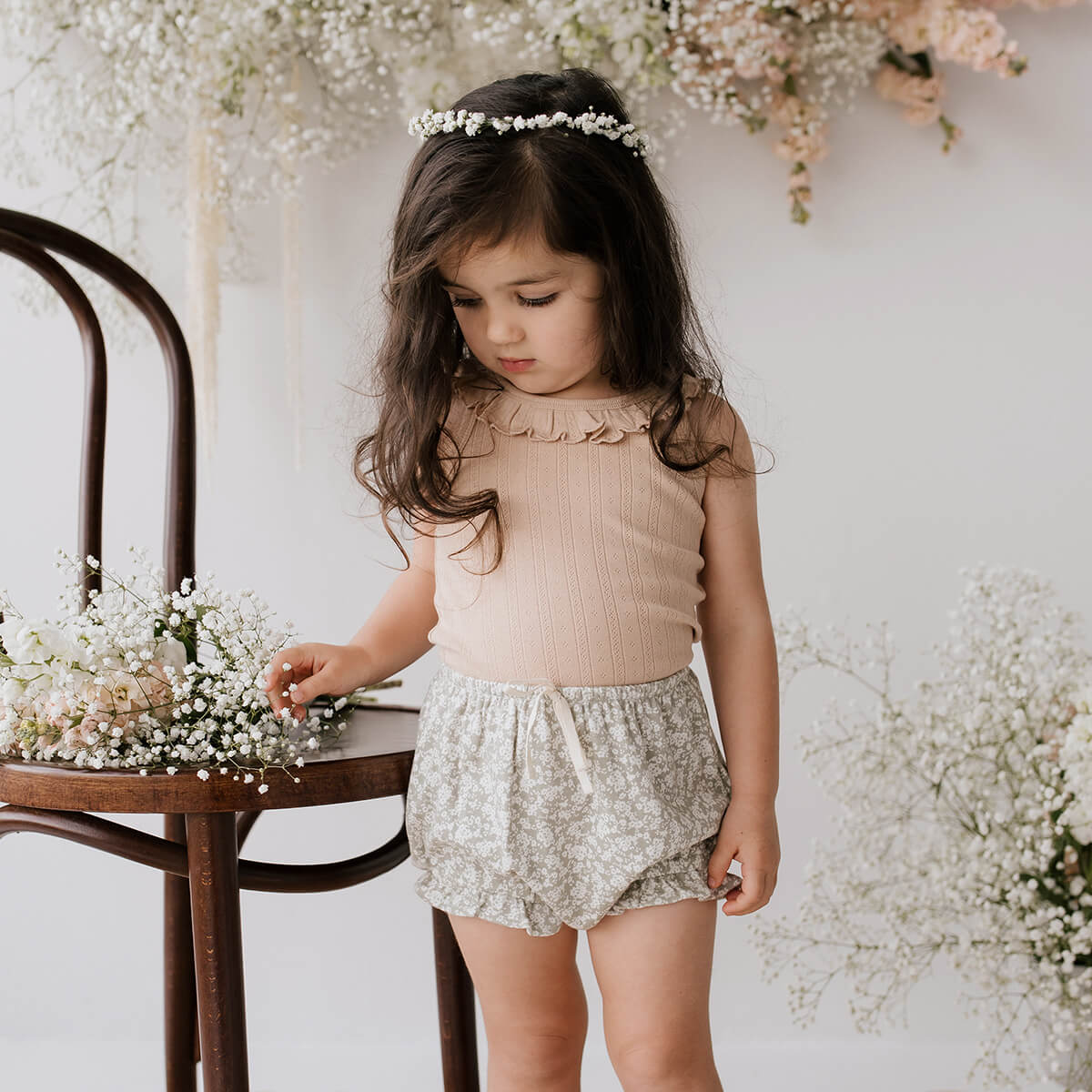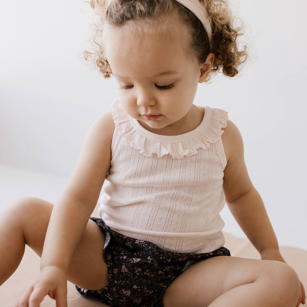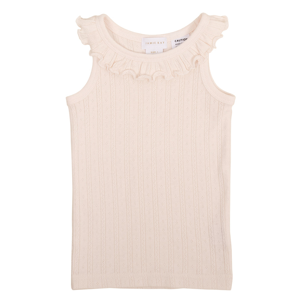 Organic Cotton Pointelle Frill Singlet - In the Meadow