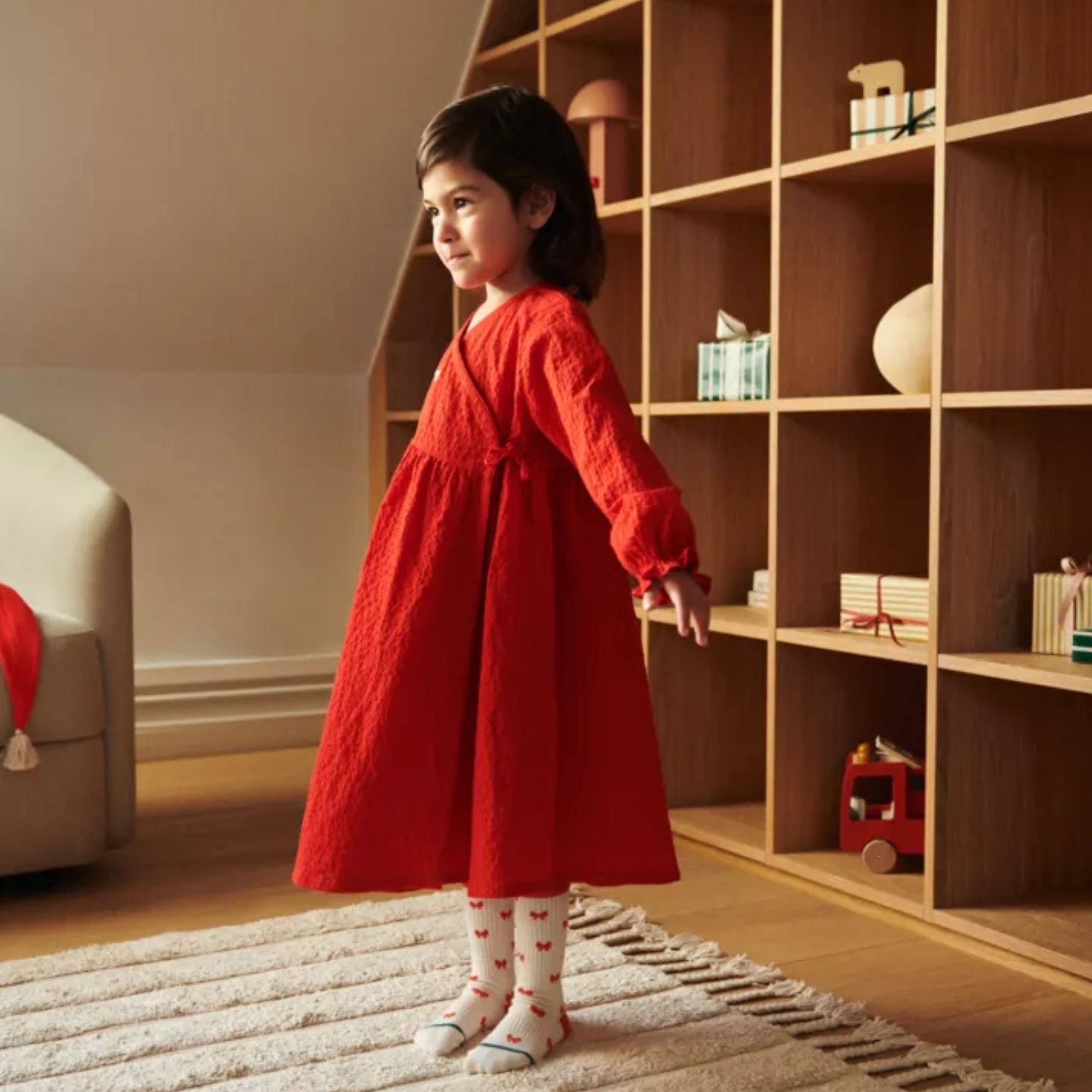Mit ihrer ultraweichen und dehnbaren Qualität sind die Annette-Socken dafür gemacht, an kleinen, beschäftigten Füßen zu bleiben. Sie sind aus Bio-Baumwolle gefertigt und in kräftigen Weihnachtsfarben erhältlich - so macht das Anziehen gleich viel mehr Spaß. Ein cooles und sportliches Detail für das Dezember-Outfit deiner Kleinen.