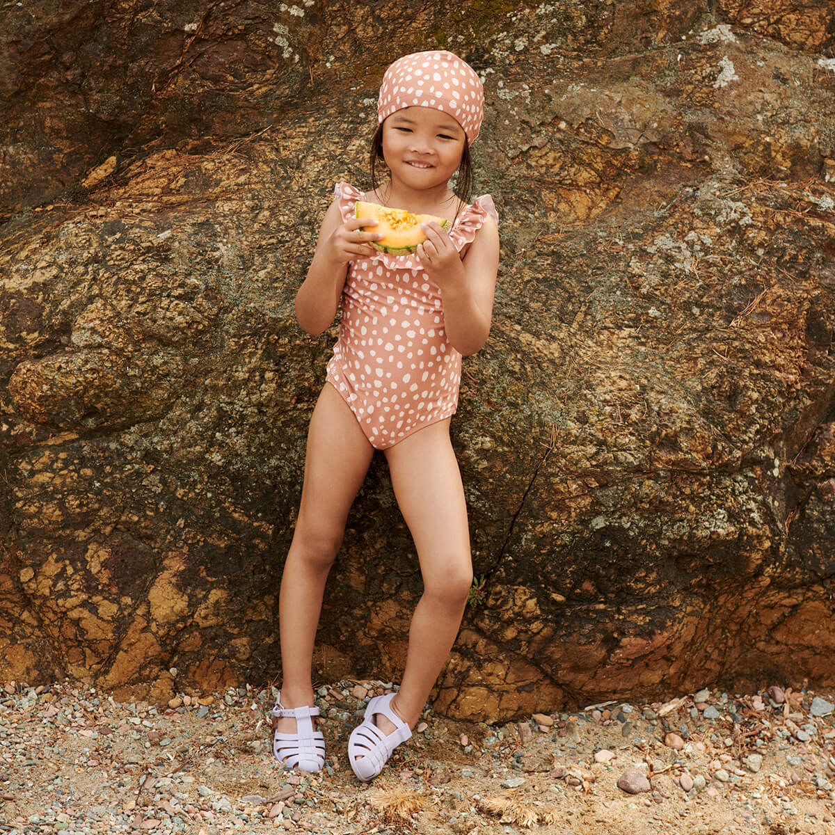 Die Bre Sandalen sind flexible Strandsandalen für Kinder, die frei von schädlichen Chemikalien sind. Perfekt für den Strand, da das PVC kein Wasser aufnimmt und dein Kleines niedliche Panda-förmige Fußabdrücke auf jeder weichen Oberfläche hinterlässt.