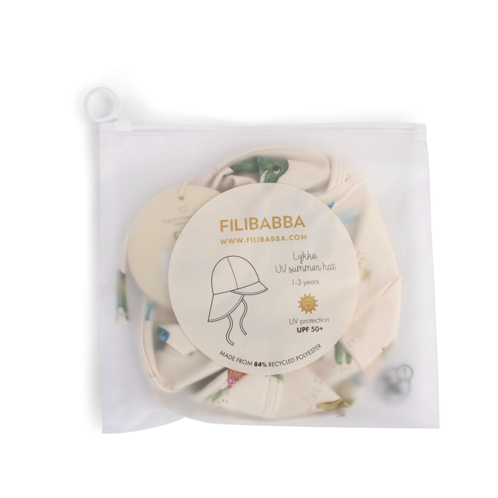 Schütze dein Kind stilvoll vor der Sonne mit dem FILIBABBA Lykke UV-Sonnenhut im bezaubernden Design. Dieser Hut kombiniert effektiven Sonnenschutz mit einem verspielten Muster, das kleine Entdecker begeistert.