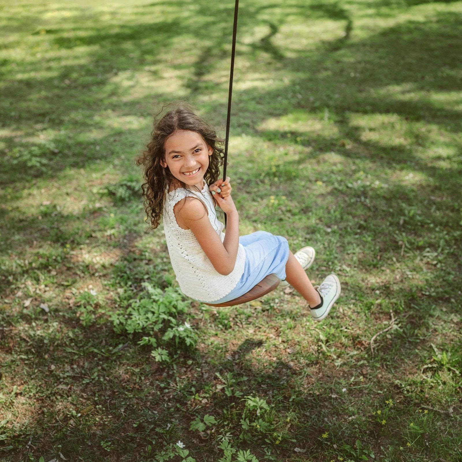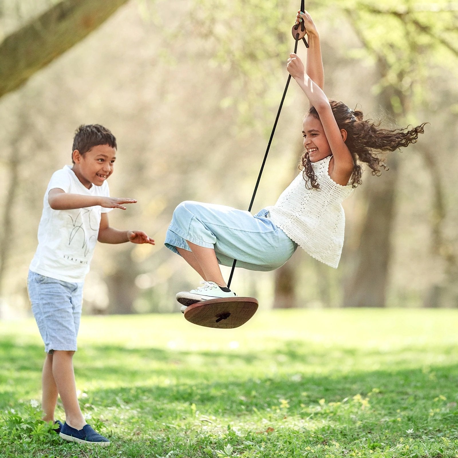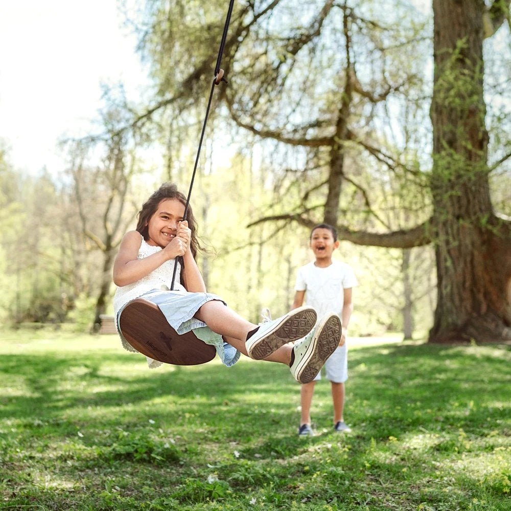 Die Disco-Schaukel ist ein perfektes Spielzeug für Aktivitäten im Freien - man kann sich drehen, wenden und schwingen, im Stehen oder im Sitzen. Die Schaukel ist aus Walnussholz gefertigt, was sie extrem haltbar und langlebig macht. Da die Disco-Schaukel leicht ist und wenig Platz einnimmt, ist sie auch ein praktisches Spielzeug für unterwegs. Alles, was Sie brauchen, ist ein Ast, eine Terrasse und ein wenig Platz, und schon können Sie garantieren, dass Ihre Kinder ihren Ausflug genießen können, wo immer Sie sich aufhalten.