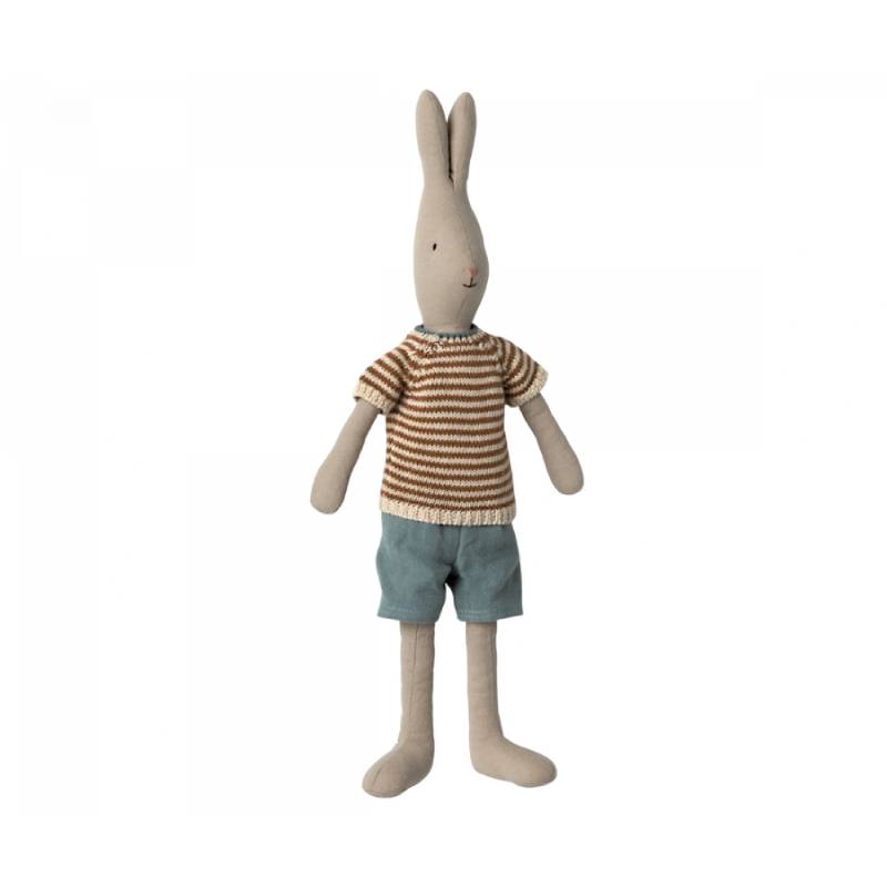 Ein Hase aus weichem natürlichem Leinenstoff, der ein schönes Handgefühl und Aussehen besitzt. Kaufe lose Kleidung separat, um die Garderobe des Hasen zu erweitern.
