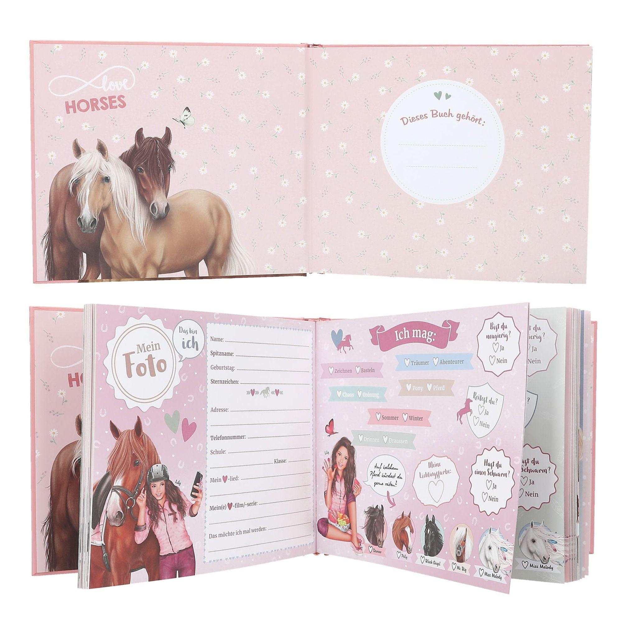 Zartes Altrosa, traumhaft schöne Pferde in sanften Braun-Tönen und ein ponytastisches Allover-Muster: Das Freundebuch von Miss Melody hat 108 liebevoll illustrierte Seiten mit jeder Menge Platz für die Antworten von Freunden und Lehrern. Zum Eintragen, Erinnern und immer wieder Anschauen.