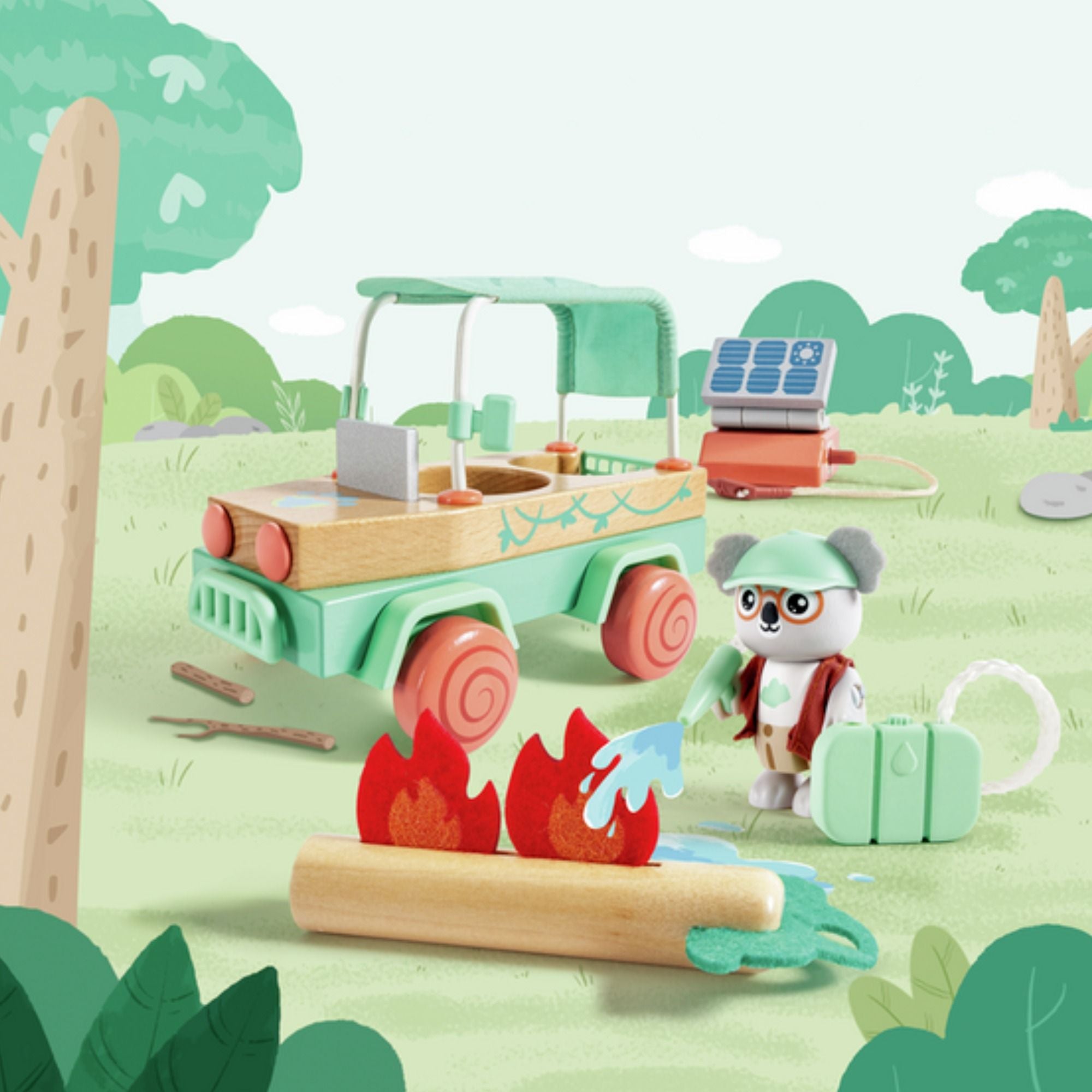 Kinder schlüpfen in die Rolle von Oscar, einem mutigen Koala-Ranger, der Tiere in Not rettet, Hindernisse beseitigt und die Umwelt schützt. Mit seinem solarbetriebenen Offroad-Fahrzeug kann Oscar durch Wälder und über sandige Pisten fahren, um Brände zu löschen oder gefallene Bäume aus dem Weg zu räumen.
