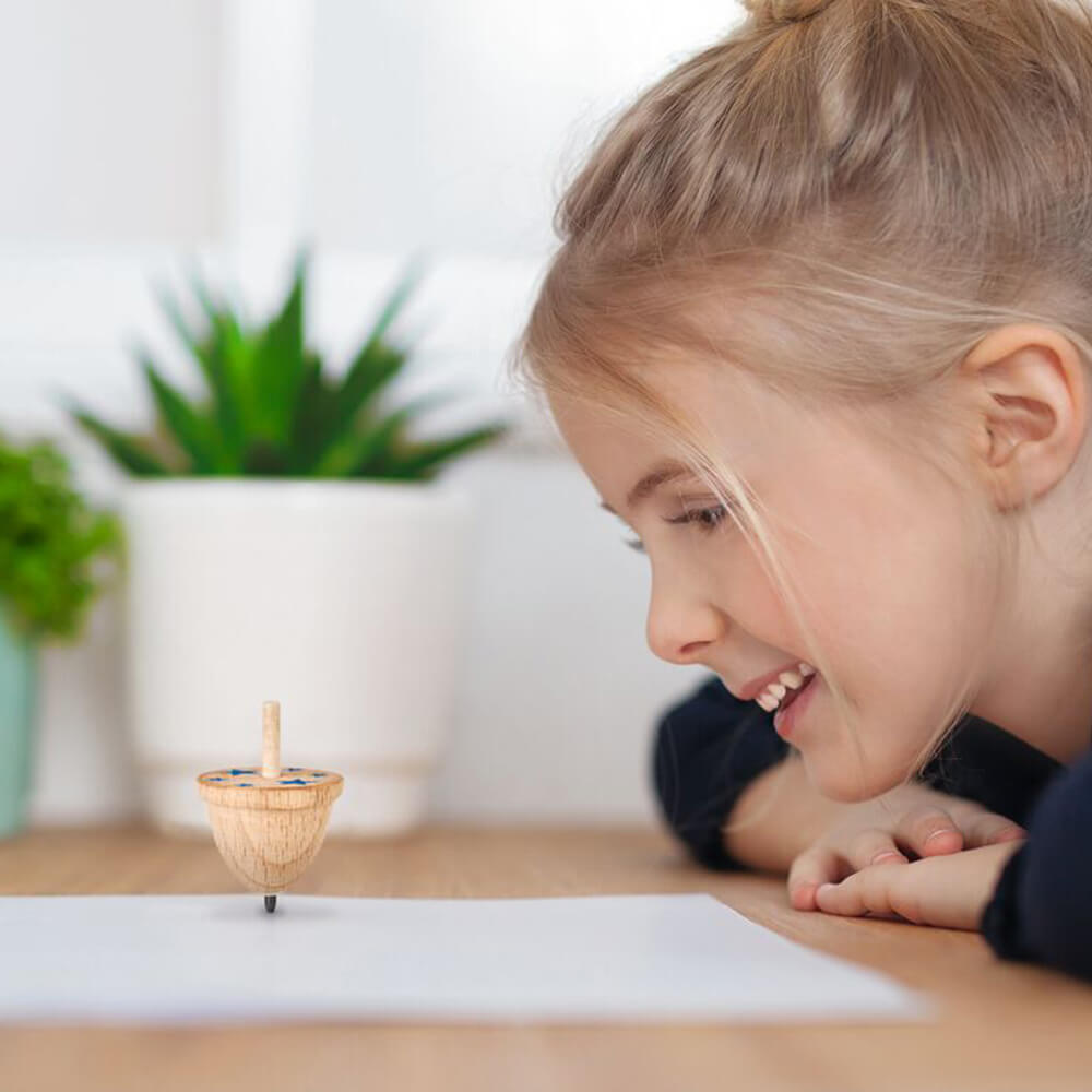 Die Magie rotierender Kreisel ist nicht nur für Kinder faszinierend. Dieses physikalische Spielzeug ist nicht nur lustig anzusehen, sondern regt auch noch den Wissenshunger an. Dadurch, dass bei diesem Kreisel die Spitze eine Bleistiftmine ist, entstehen auf einem Blatt Papier bei der Rotation des Kreisels die interessantesten Muster. Doch warum kippt der Malkreisel nicht sofort um, wenn er gedreht wird? Wenn sich ein Kreisel schnell dreht, entstehen Fliehkräfte. Sie sind stärker als die Schwerkraft und sorgen dafür, dass der Kreisel rotierend aufrecht stehen bleibt. Der Malkreisel veranschaulicht Kindern im Grundschulalter nicht nur die physikalischen Prinzipien eines Kreisels, sondern fördert auch die Geschicklichkeit und die Kreativität der Kinder. Wenn sie den Kreisel tanzen lassen, werden sie ganz nebenbei auch noch zu kleinen Künstler*innen und lassen die kreativsten Kunstwerke entstehen. Neben dem Kreisel mit auswechselbarer Bleistiftspitze sind auch Wechselminen enthalten. Spannende Informationen zu den physikalischen Phänomenen „Schwer- und Fliehkraft“ stillen den Wissensdurst kleiner Wissenschaftler*innen. So lernen Kinder nicht nur, wie sich der Kreisel dem Gesetz der Schwerkraft für kurze Zeit entzieht, sondern auch, dass Kreisel sogar in der Wissenschaft eine große Rolle spielen.