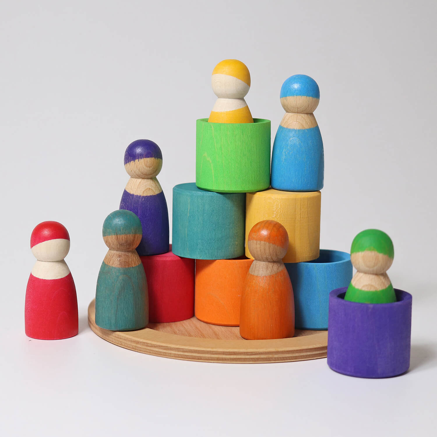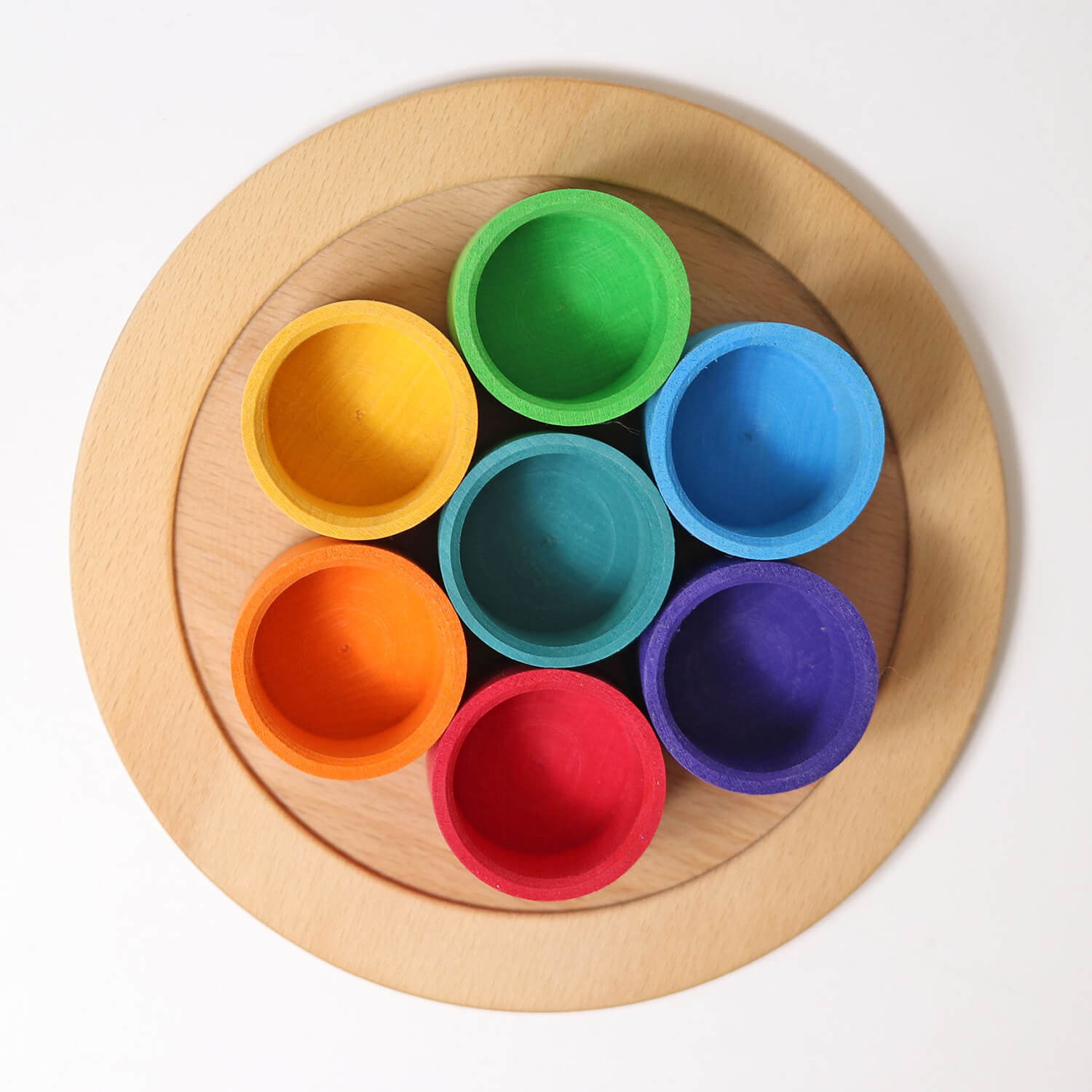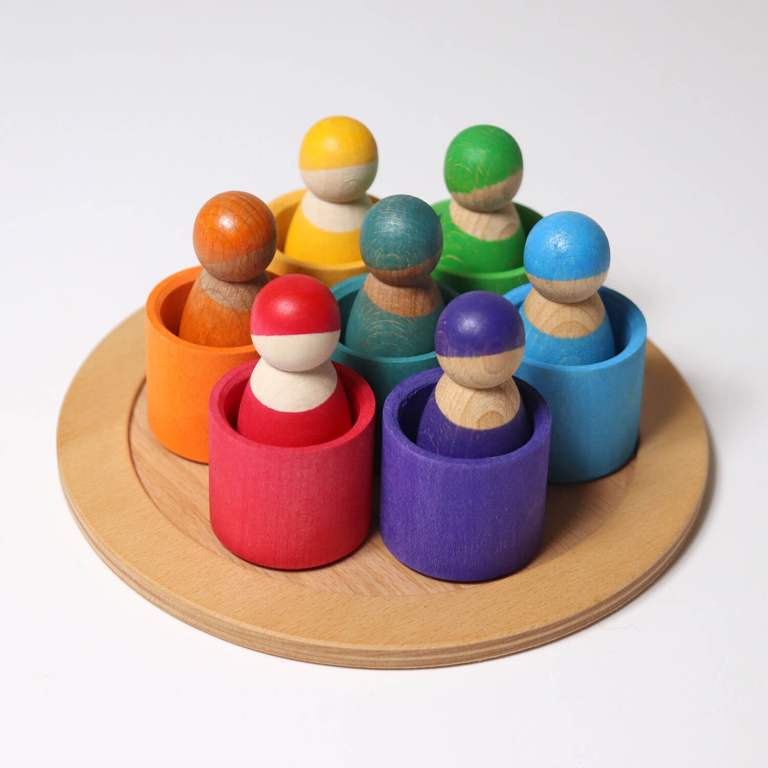Dieser Spielzeugklassiker begleitet Ihr Kind für lange Zeit, denn es finden sich immer wieder neue Spielmöglichkeiten: Schon die Allerkleinsten lieben es, die 7 Freunde aus ihren Holzschälchen zu nehmen, die Schälchen umzudrehen, aufeinanderzustapeln und die Männchen wieder in die Holzschälchen zu stecken … wieder und wieder, denn genau darin liegt der Zauber des Spielens: Fähigkeiten und Fertigkeiten neu entdecken und die Dinge wieder und wieder zu tun, bis sie sich gefestigt haben. Irgendwann können die Freunde den farblich passenden Schälchen zugeordnet werden, die Schälchen finden Verwendung im Kaufladen oder dienen als kleine Teetassen …