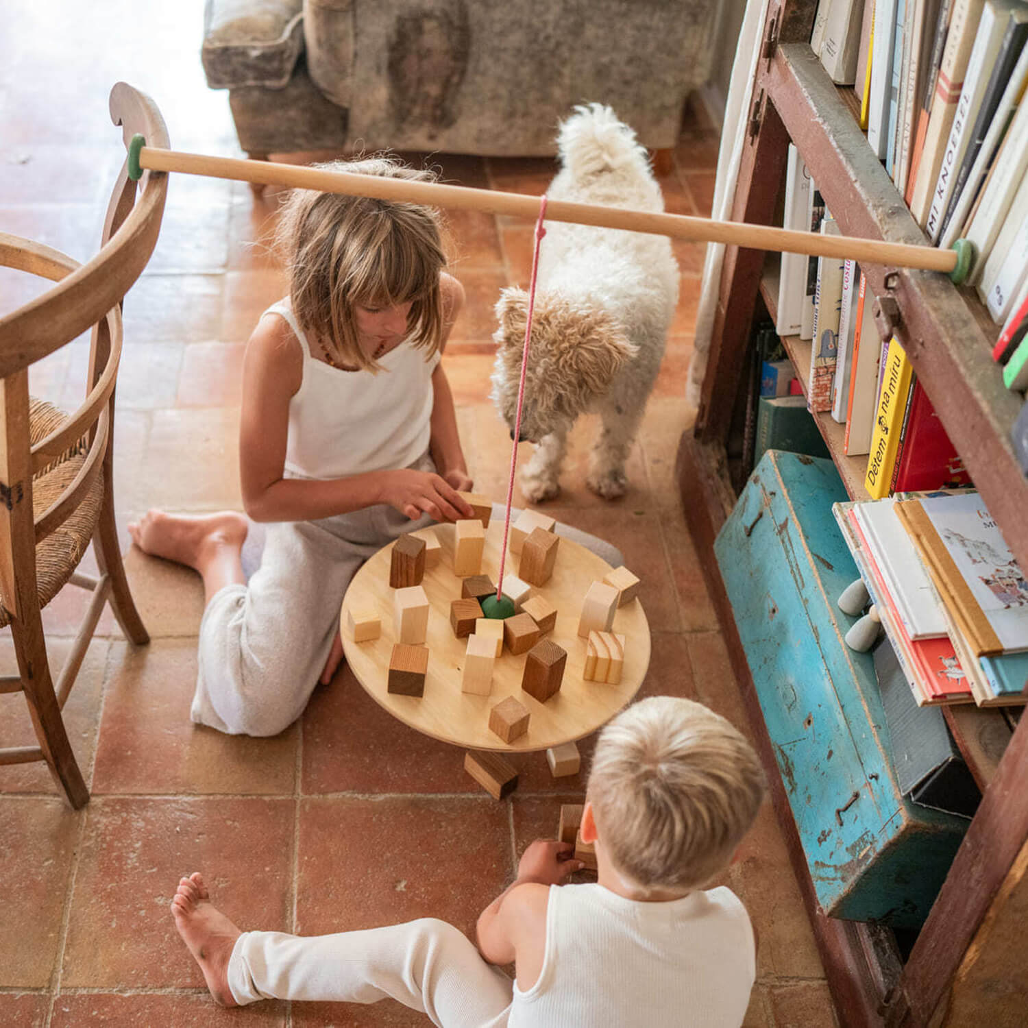 Ein Balance-Board und eine Sammlung von Holzstücken. Fordere dich selbst heraus, das perfekte Gleichgewicht zu finden, es zum Drehen zu bringen oder mit den Konzepten der Physik zu experimentieren – alles mit deinen eigenen Händen!