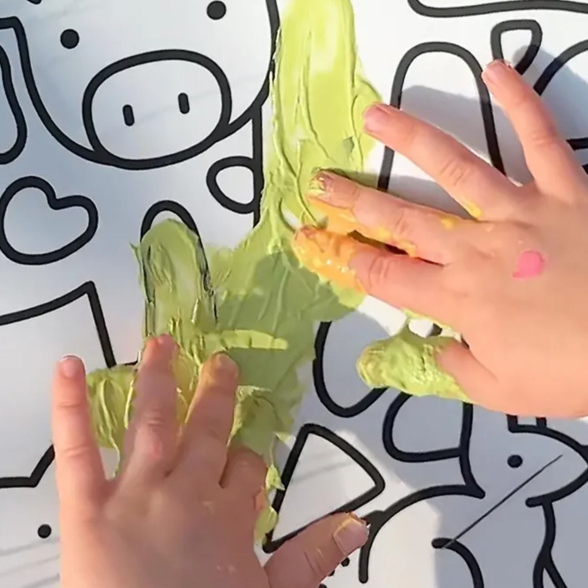 Unsere Fingermalfarben haften auf nahezu allen gängigen Basteluntergründen, wie Papier, Karton, Keilrahmen, Holz, Stein, Fliesen, Spiegel oder auch Glas. So wird jeder Ort zum Atelier – ob am Küchentisch, im Kinderzimmer oder auf der Terrasse.