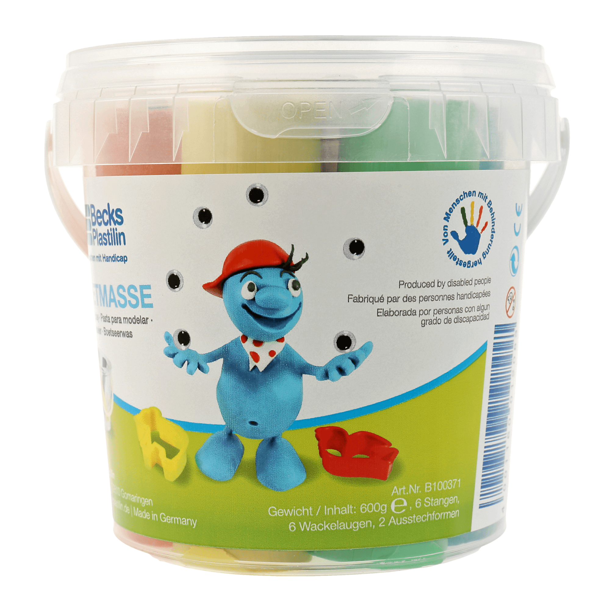 Knete im Eimer mit Wackelaugen und 2 Ausstechern