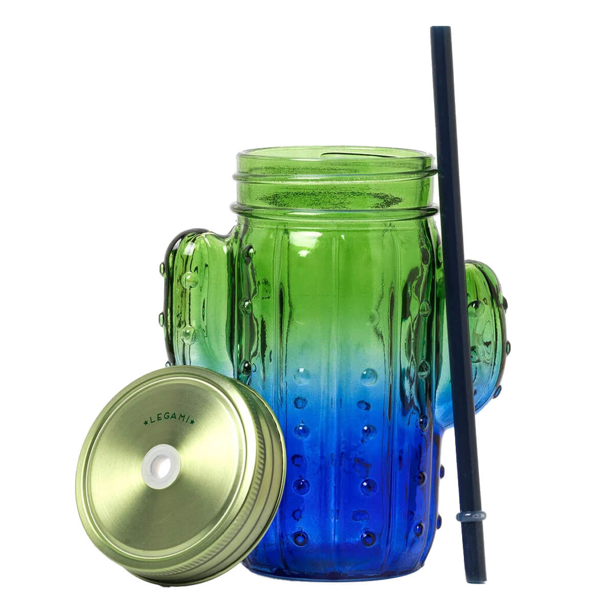 Der Glasbecher mit Deckel und Strohhalm im „Cactus“-Design bringt sommerliche Frische und einen Hauch Hipster-Style in jedes Getränk. Mit seinem auffälligen Griff in Kaktus-Form liegt er gut in der Hand und wird zum echten Hingucker bei Cocktails, Limonaden, Eistee oder Wasser. Der praktische Edelstahldeckel mit Schraubverschluss sorgt dafür, dass nichts verschüttet wird, egal ob zu Hause, auf dem Balkon oder unterwegs. Der wiederverwendbare Strohhalm macht jeden Schluck noch angenehmer und nachhaltiger. Der Becher ist für den Kontakt mit Lebensmitteln geeignet und das Glas kann problemlos in der Spülmaschine gereinigt werden, Deckel und Strohhalm werden separat per Hand gespült. Ein stylischer Begleiter für alle, die ihre Getränke mit Persönlichkeit genießen möchten.
