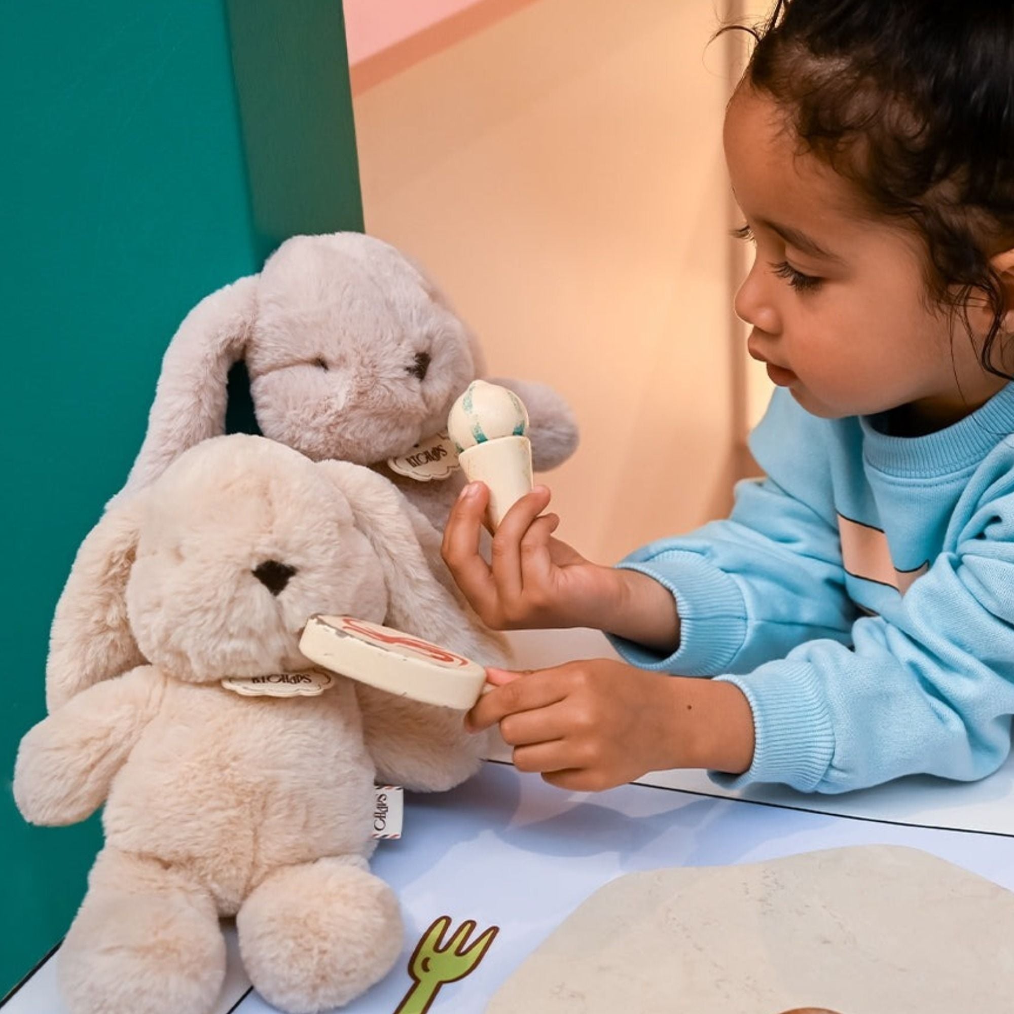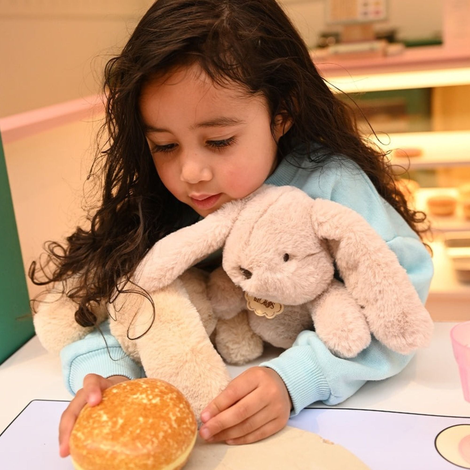 Kuscheln Sie mit den niedlichen Hasen! Er ist eine sanfte und weiche Umarmung wie die kuscheligste Wolkenumarmung. Dabei ist er nicht nur irgendein Plüschtier, sondern er ist dein bester Kumpel, deine Geheimnisträger und Traumwächter in einer Person. Willst du ihn umarmen?