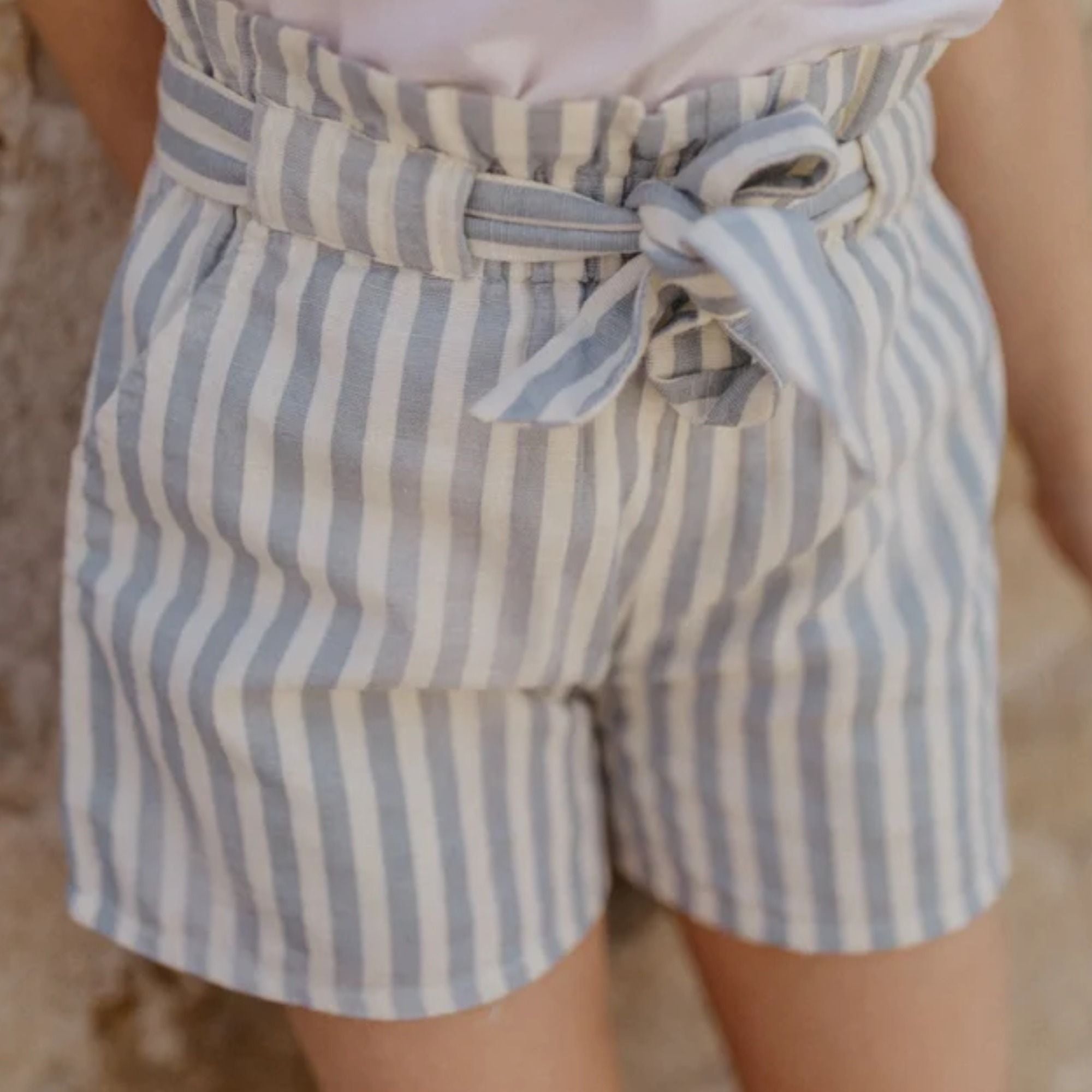 Unsere Shorts 'blue stripes' ist eine schöne, zeitlose Shorts aus Baumwolle und Leinen. Die Schleife zum binden sorgt für das gewisse Etwas. Sie ist der perfekte Begleiter für warme Sommertage und kann sowohl zu besonderen Anlässen als auch im Alltag getragen werden.