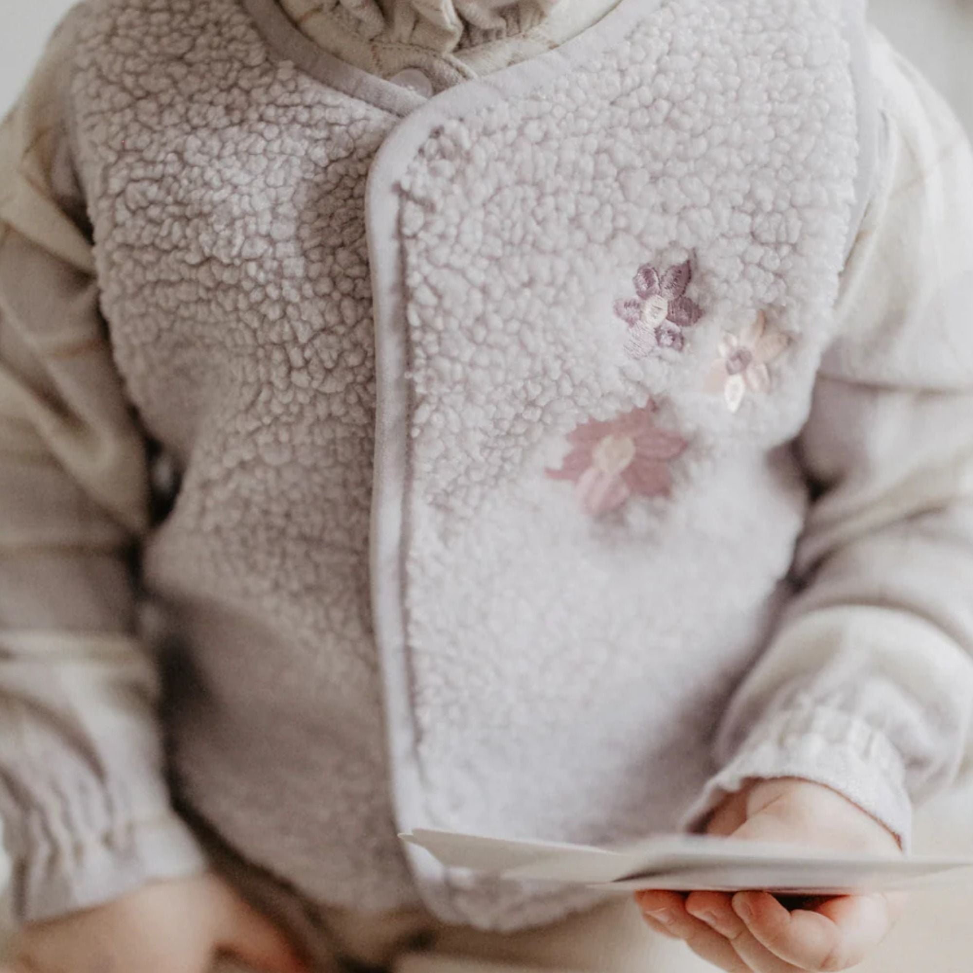Dieses niedliche Gilet aus kuscheligem Teddystoff ist ein echtes Lieblingsstück für kühle Tage. Die liebevolleStickerein auf der Brust verleiht ihm einen verspielten Akzent, während das weiche Material angenehm wärmt und zum Wohlfühlen einlädt. Perfekt zum unkomplizierten Drüberziehen und für einen zauberhaften Look.
