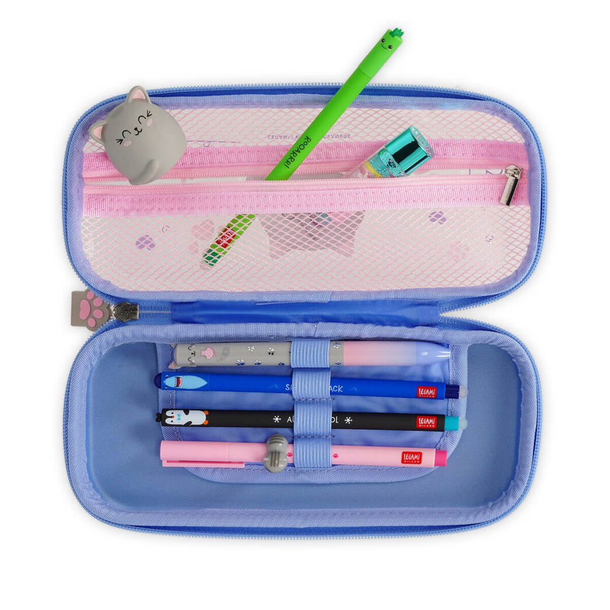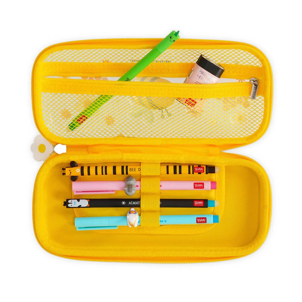 Stifte sicher und ordentlich verstaut und bereit für Schule, Hausaufgaben oder spontane Tests sind diese Hartschalen-Federmäppchen von Legami die idealen Begleiter für jeden Schreibtag. Die transparenten Hartschalen-Modelle schützen den Inhalt zuverlässig und bieten eine durchdachte Innenaufteilung mit Netzfach, Reißverschluss und elastischen Stiftehaltern, sodass alles schnell griffbereit ist. Die verschiedenen Designs reichen vom niedlichen Panda über die fröhliche Biene bis hin zu Unicorn, Kitty, Monster und Space und bringen Farbe, Persönlichkeit und gute Laune in den Schulalltag. Praktisch, robust und liebevoll gestaltet sorgen diese Hartschalenmäppchen dafür, dass Schreibutensilien sicher verstaut sind und Lernen gleich ein bisschen mehr Spaß macht.