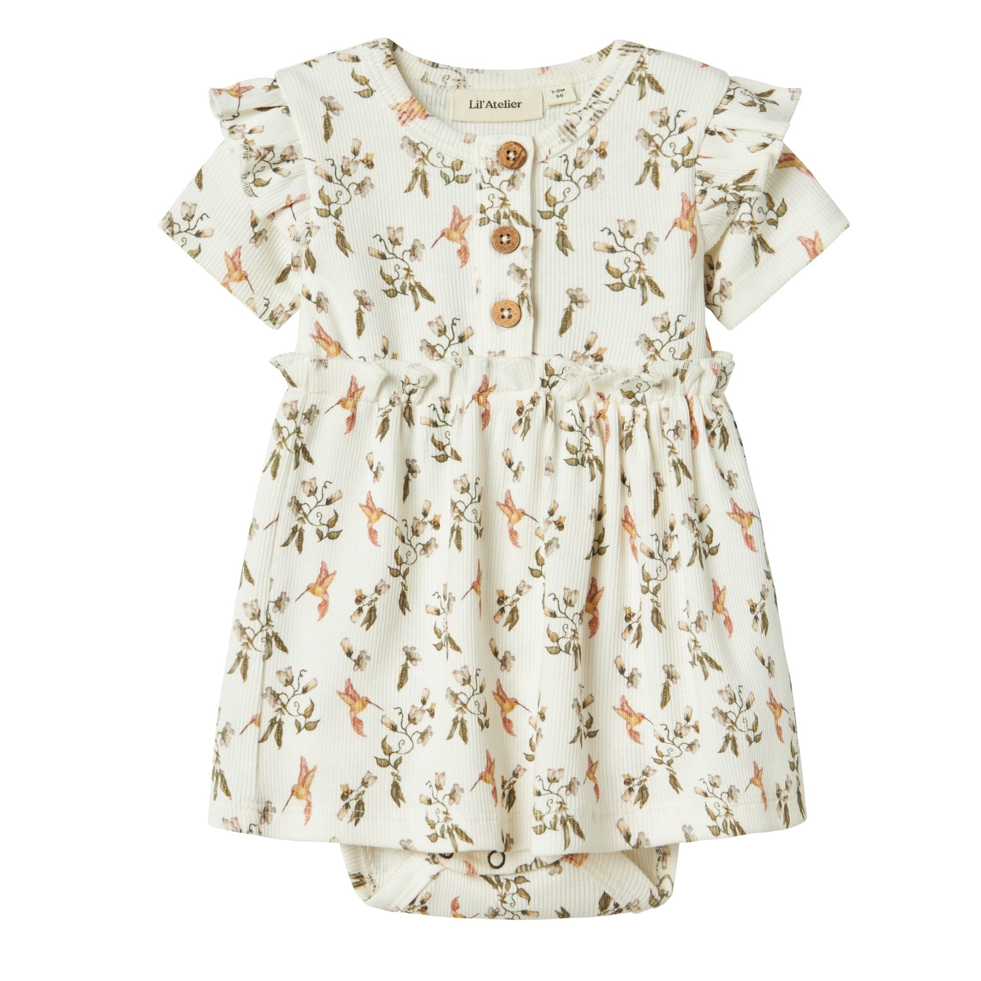 Baby Kurzarm-Rüschenbodykleid aus Bio-Baumwolle von Lil' Atelier
