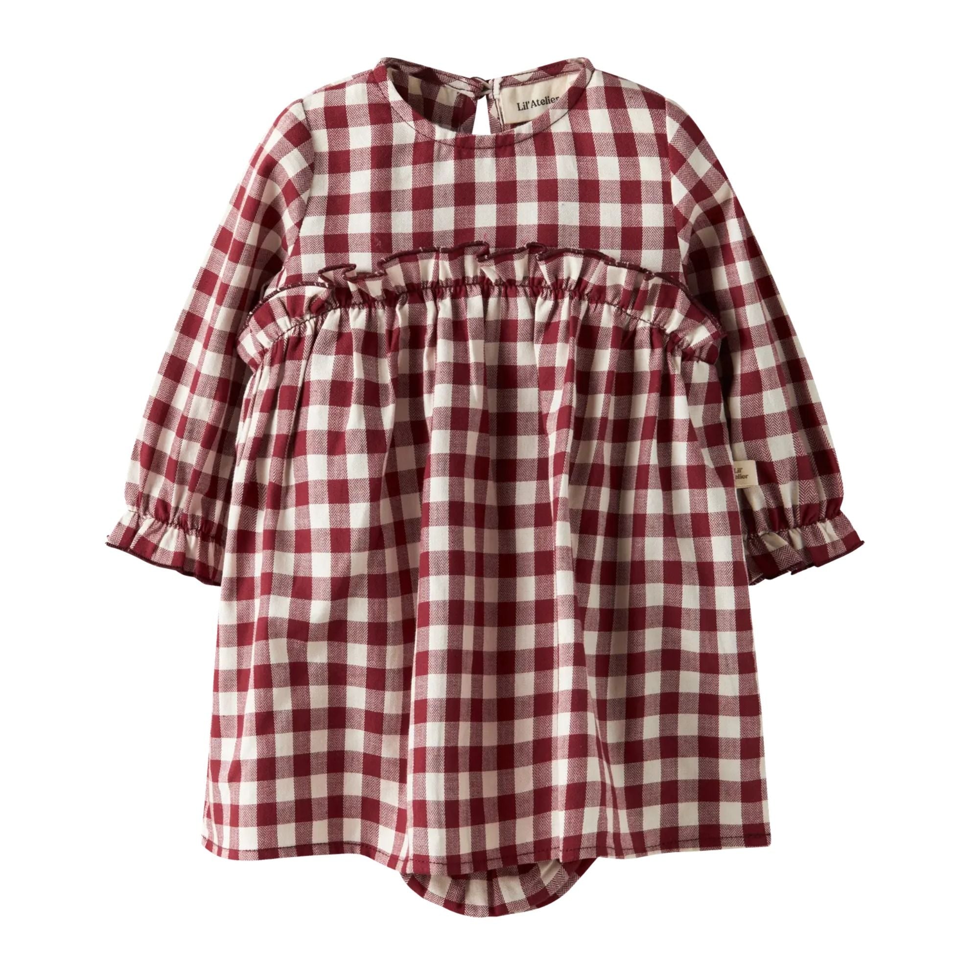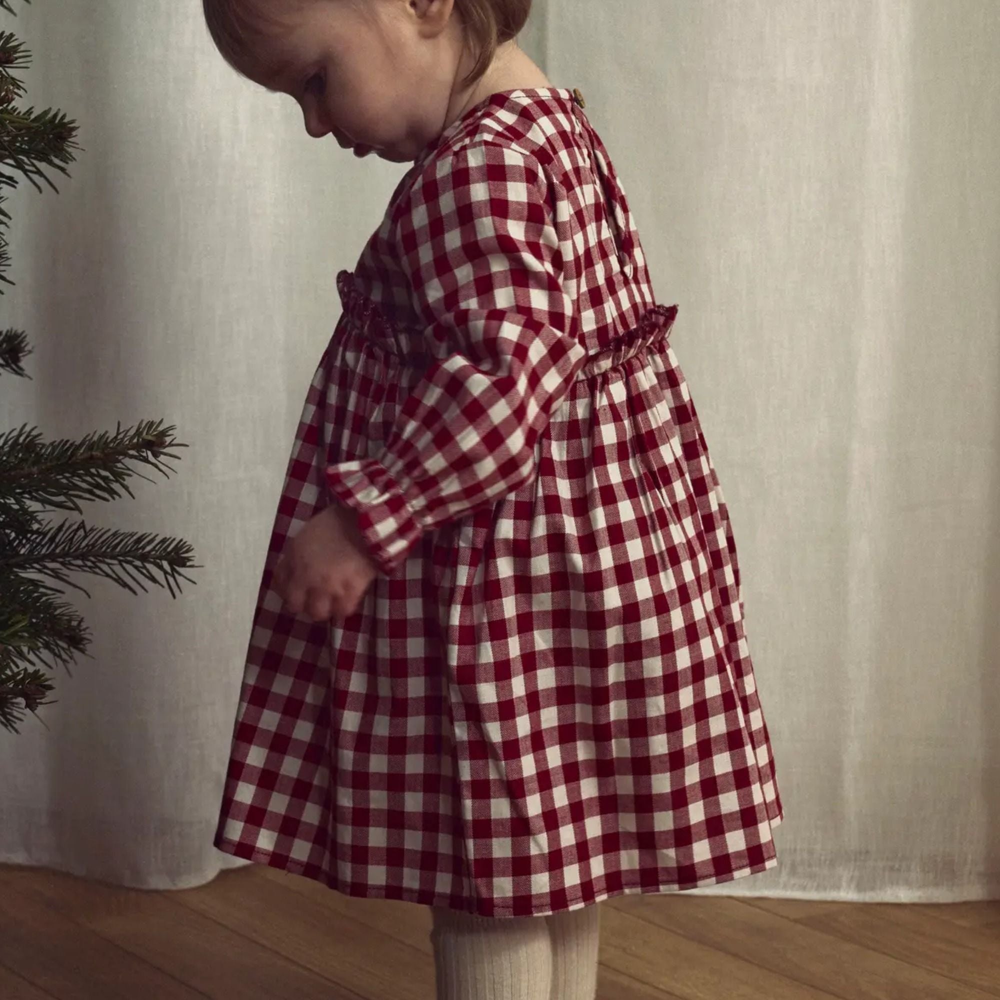 Baby Langarm-Body-Kleid kariert aus Bio-Baumwolle von Lil' Atelier