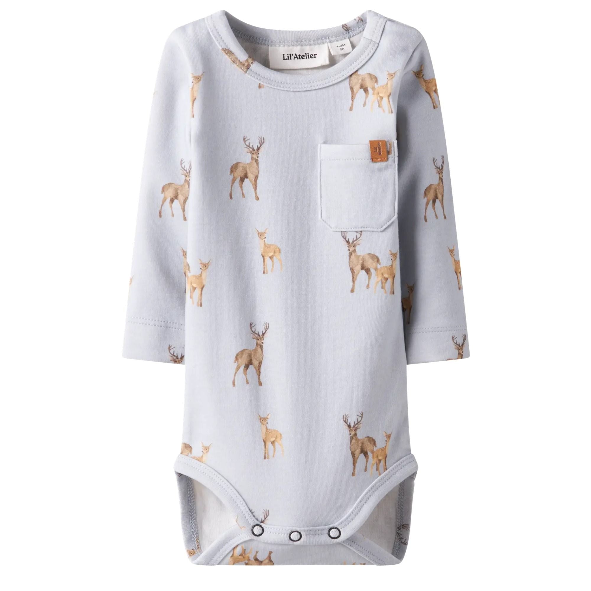 Baby Langarm-Body mit aufgesetzter Tasche aus Bio-Baumwolle von Lil' Atelier