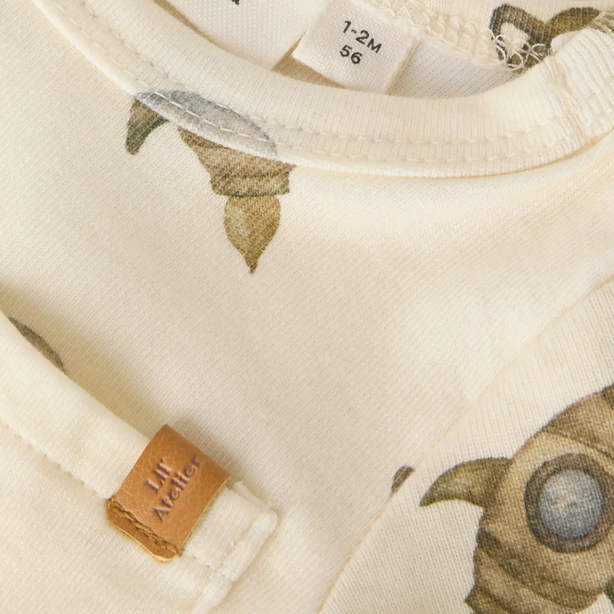 Dieser weiche Baby-Body aus hochwertiger Bio-Baumwolle bietet optimalen Tragekomfort und ist besonders sanft zur empfindlichen Babyhaut. Der liebevolle All-Over-Print mit tollen Motiven verleiht dem Body einen charmanten Look. Eine kleine Brusttasche setzt einen dezenten Akzent, während praktische Druckknöpfe im Schritt das An- und Ausziehen sowie das Wickeln erleichtern. Ideal für den Alltag, bequem, hautfreundlich und vielseitig kombinierbar.
