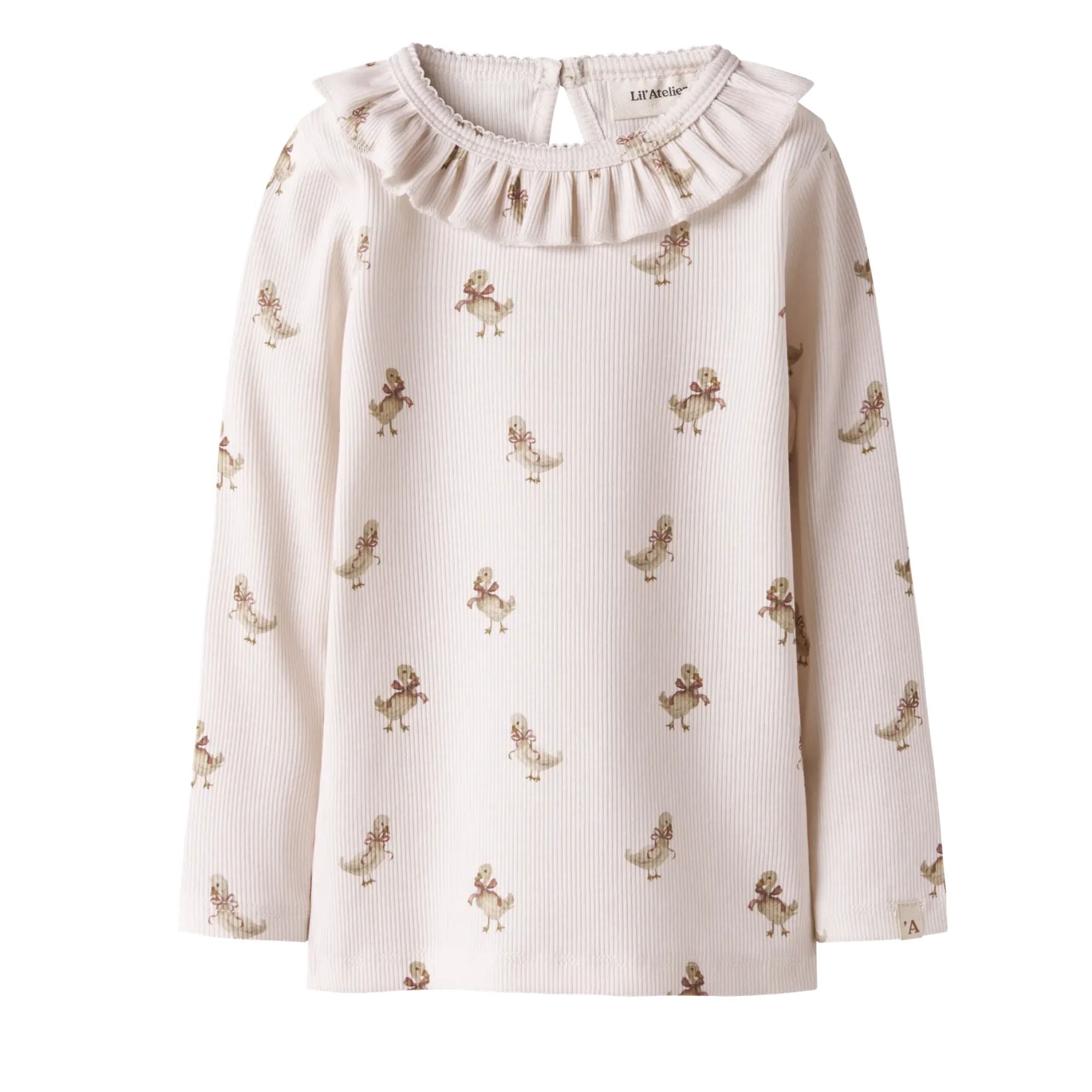 Kinder Langarm-Shirt mit gerüschtem Kragen aus Bio-Baumwolle von Lil' Atelier