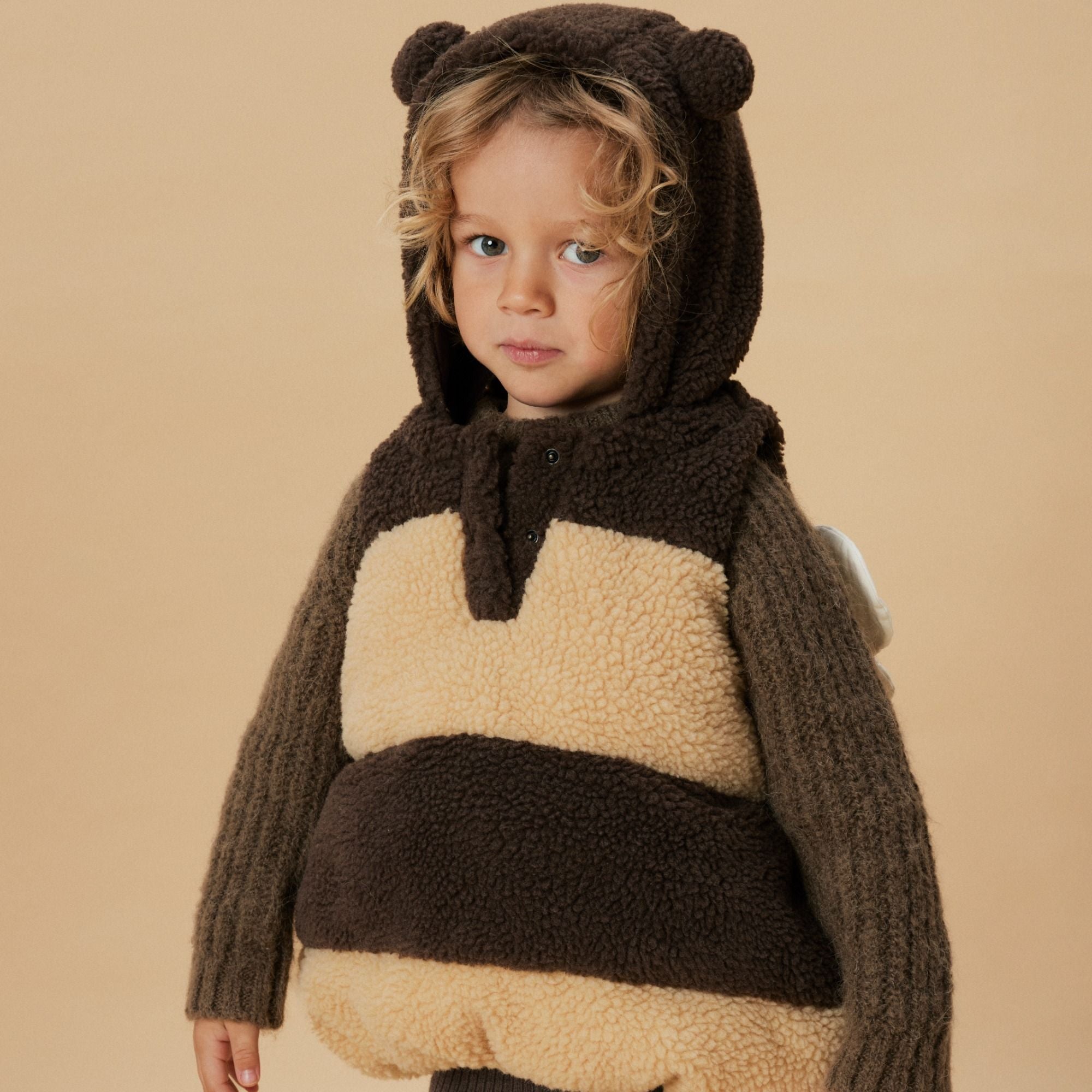 Dieses gemütliche Kinderkostüm ist super stylisch. Es besteht aus recyceltem Polyester und bietet dadurch eine nachhaltige Wahl für den Alltag. Der weiche Fleece-Stoff sorgt für Wärme und Komfort, während die praktische Kapuze zusätzlichen Schutz bietet. Druckknöpfe am Ausschnitt erleichtern das An- und Ausziehen und sorgen für eine bequeme Passform. Ideal für Abenteuer und Spiele, ob zu Hause oder bei besonderen Anlässen.