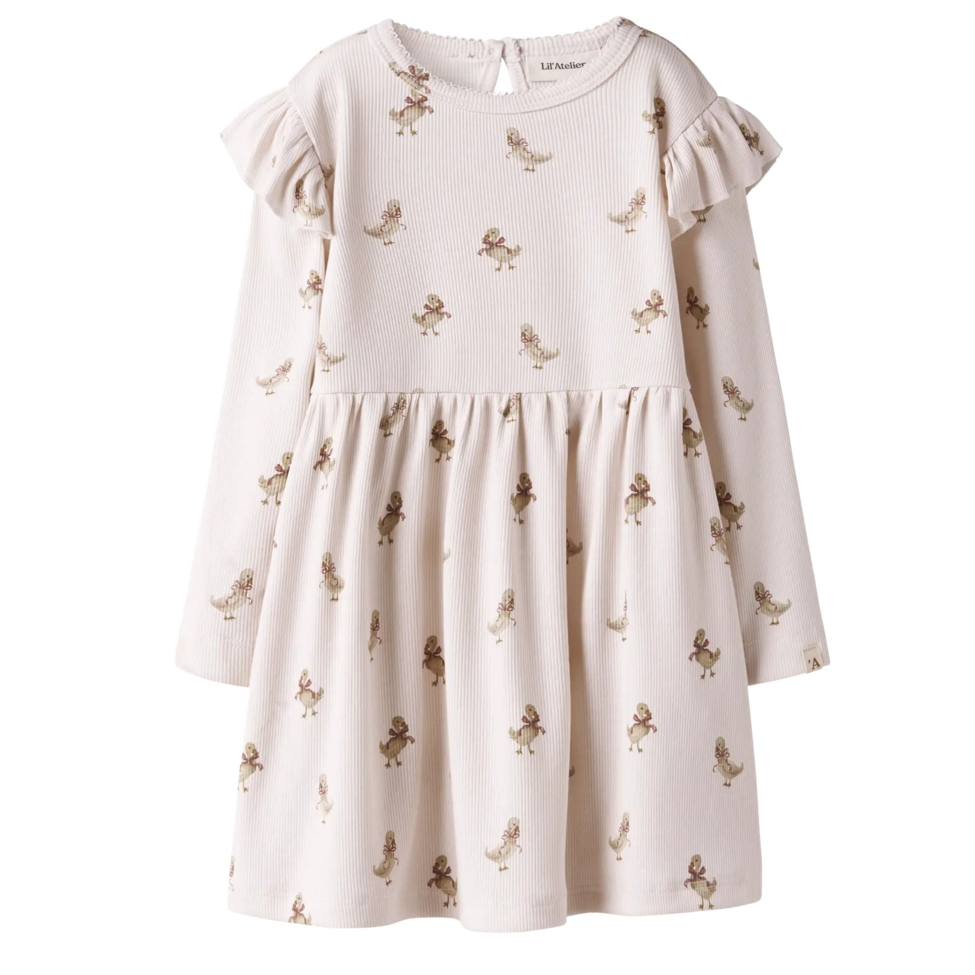 Kinder Langarm-Kleid mit gerüschten Schultern aus Bio-Baumwolle