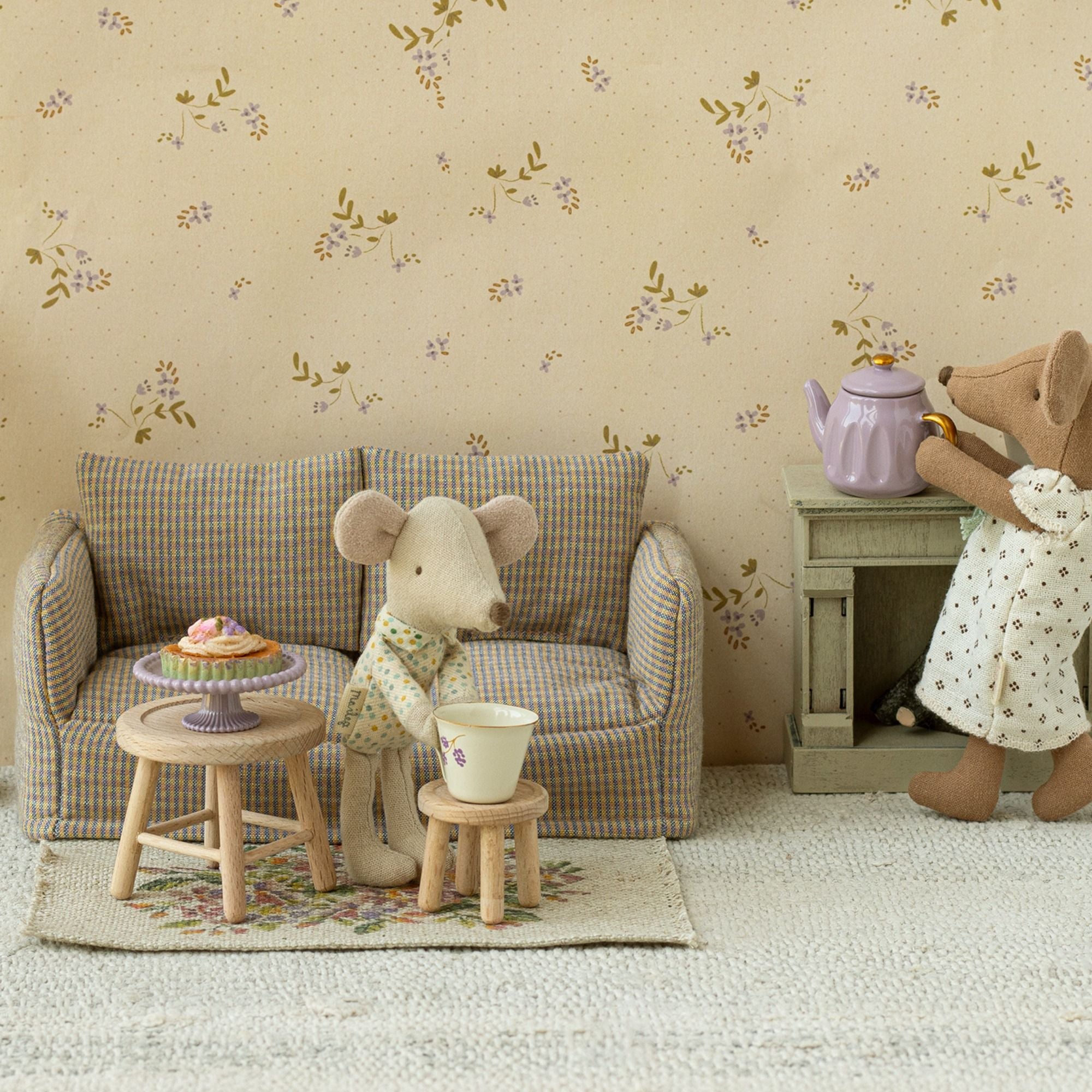 Diese gemütliche kleine Couch ist der ideale Ruheplatz für die gesamte Mäusefamilie und passt perfekt in das Wohnzimmer des Mauseloch Bauernhauses. Die Couch ist aus Holz und Baumwolle gefertigt und mit weichem Polyester gefüllt, um den kleinen Mäusen maximalen Komfort zu bieten.