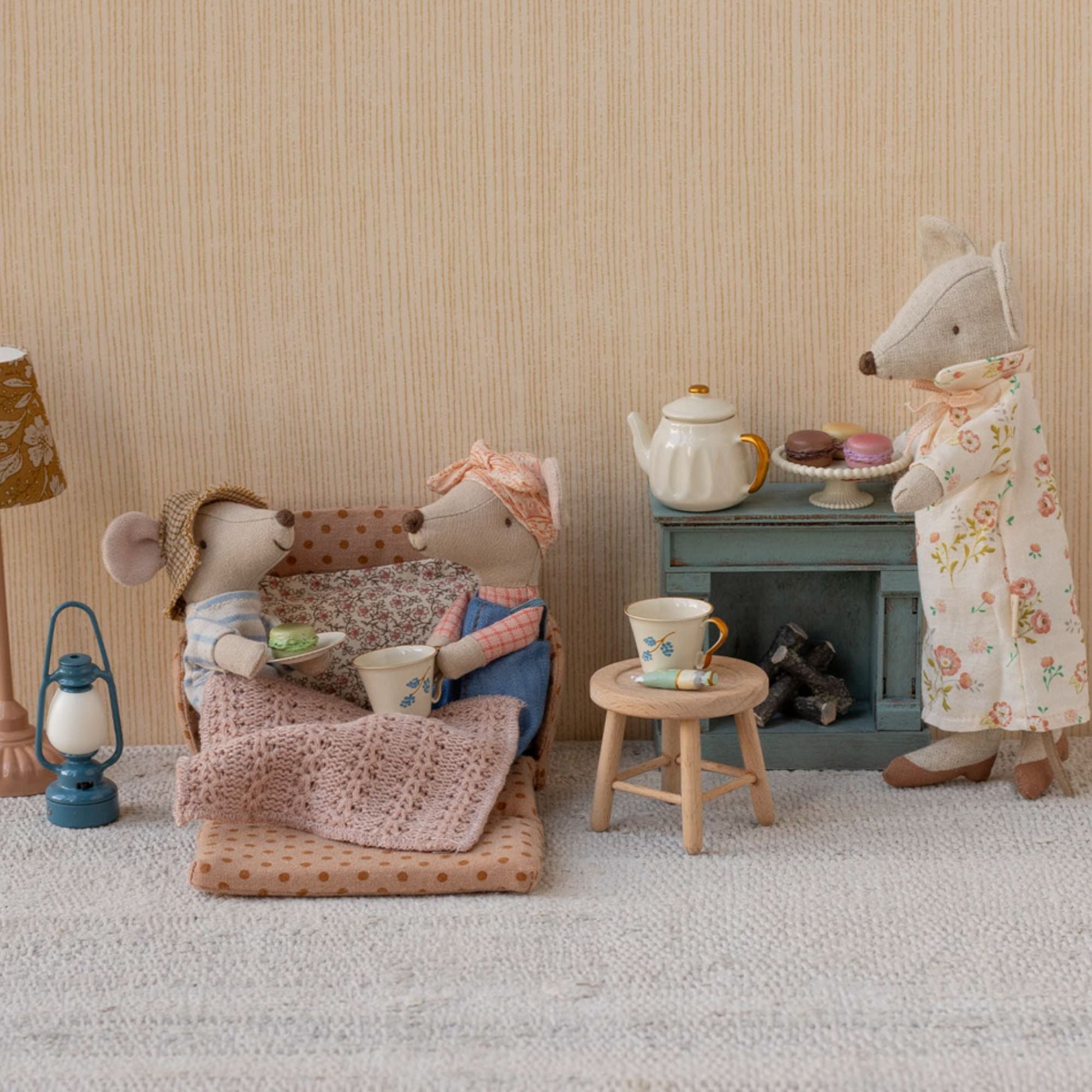 In dieser Welt, in der es keine Zeit gibt, werden wunderschöne Accessoires und Geschichten gesammelt und mit der Familie und Freunden über Generationen geteilt. In einer chaotischen Welt, in der man ständig mit Problem konfrontiert wird ist Maileg eine Welt, in der Mäuse in Streichholzschachteln schlafen und Prinzessinnen Kaffeekränzchen halten. Es ist eine Welt in der Katzen und Mäuse Freunde sind und Abenteuer bei einem schönen Waldspaziergang passieren. Unsere Welt hat Platz für Kindheitsfantasien und Spiel – dies ist eine Welt die wir schätzen. Maileg ist eine Marke mit charmantem und dänischem Designspielzeug, kreiert um der Fantasie ihrer Kinder freien Lauf zu lassen. Die Produkte wecken die Märchenlaune und helfen den Kindern die einfachen Wunder der Vorstellungskraft zu entdecken. Maileg ist beliebt für die herzerwärmenden Persönlichkeiten der Charaktere, denn in jedem kleinen Detail kann man den Charm und die Freude am Spielen entdecken.