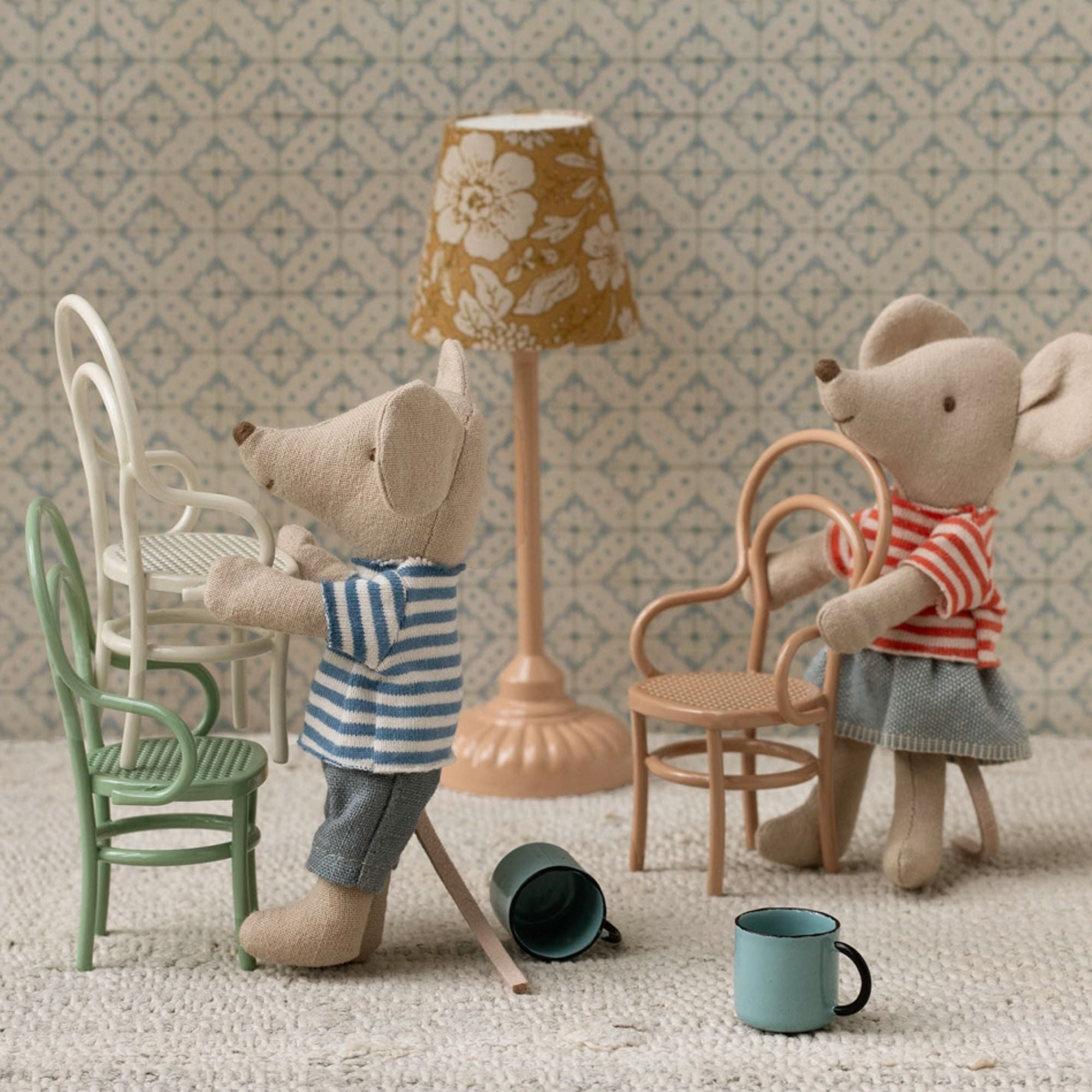 Ein kleiner Stuhl, der für die Mäuse der kleinen Schwester/des kleinen Bruders und der großen Schwester/des großen Bruders passt. Passt perfekt in die kleinen Räume, in denen die Mäuse leben.