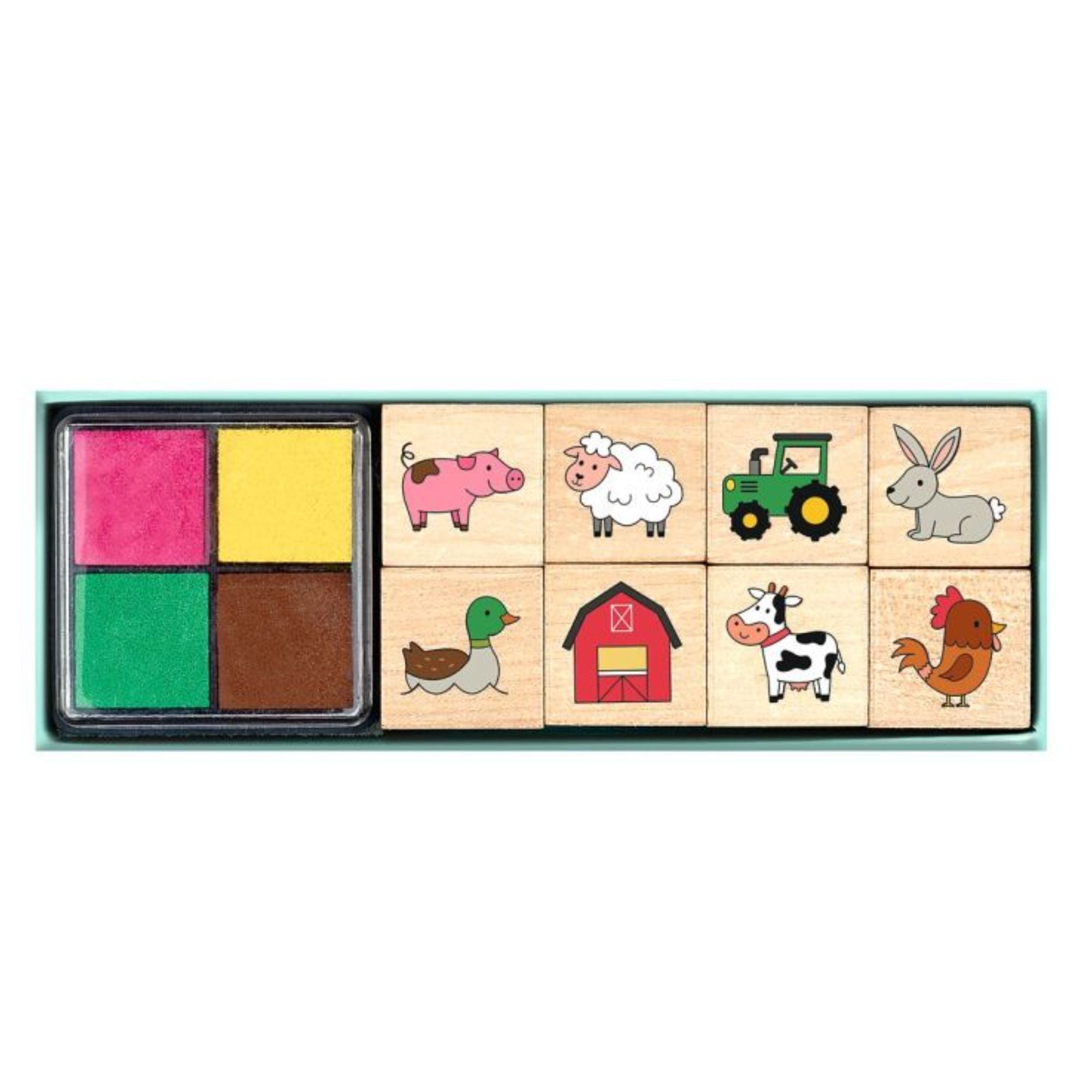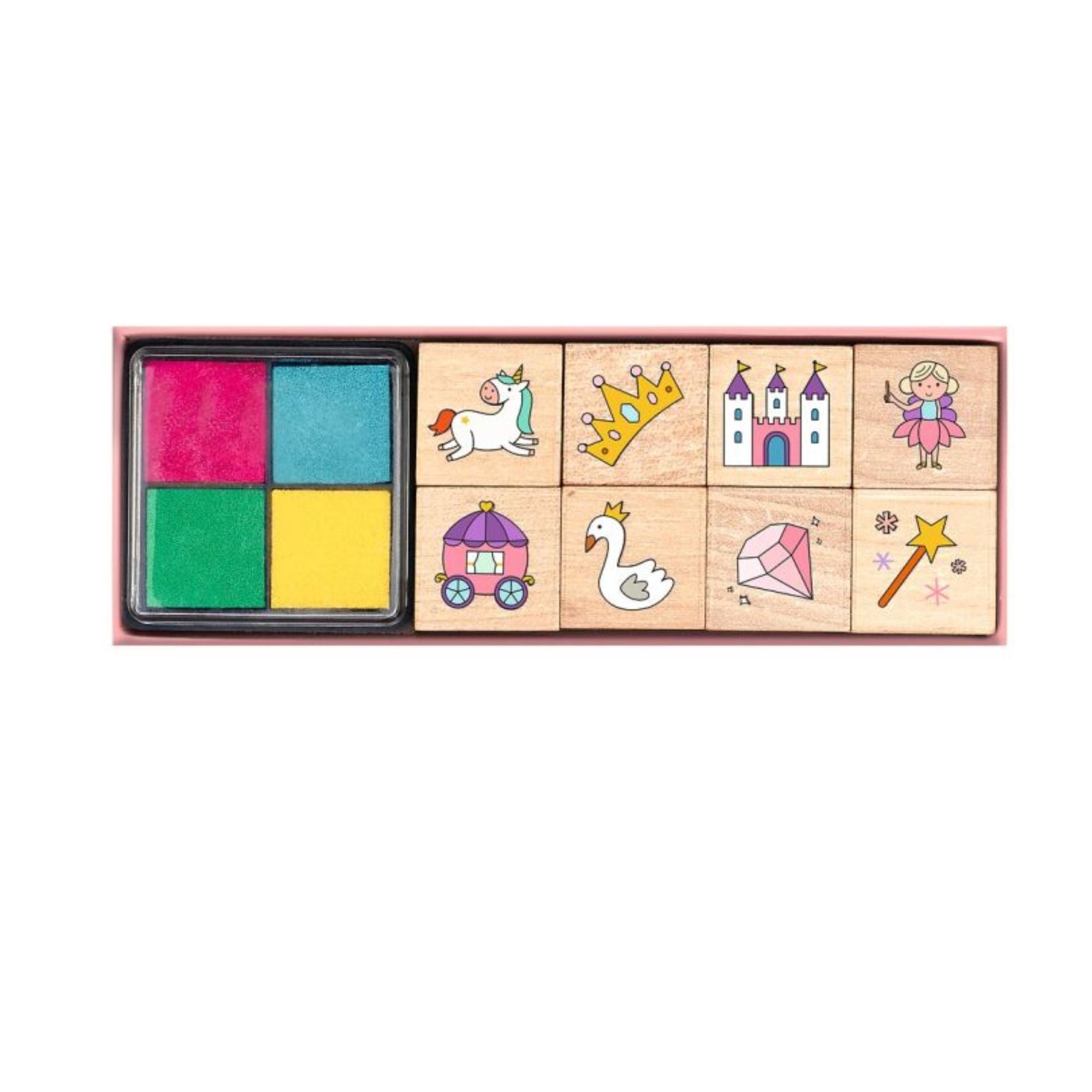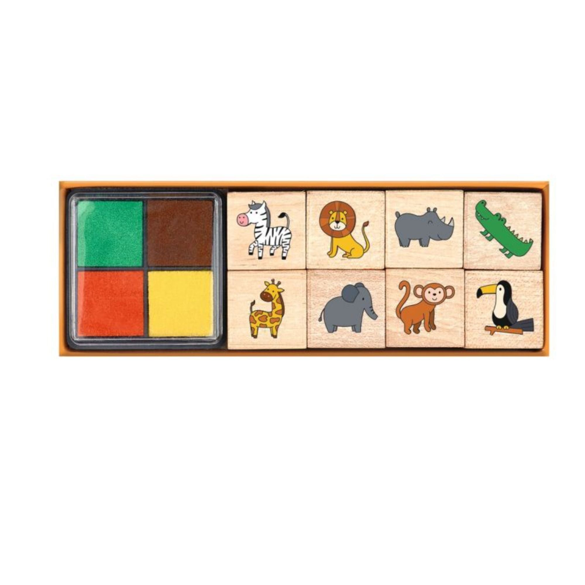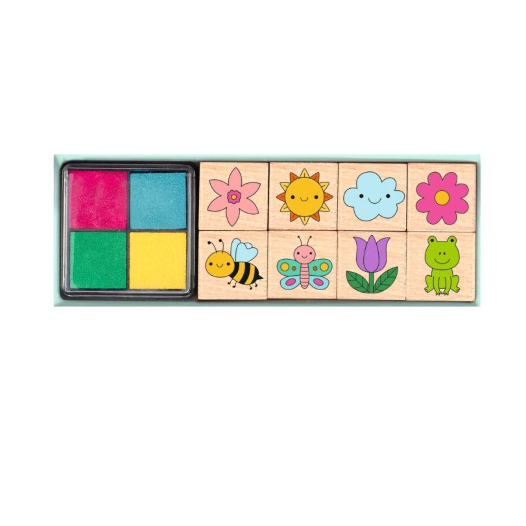 - Set mit 8 verschiedenen Stempeln und vierfarbigem Stempelkissen