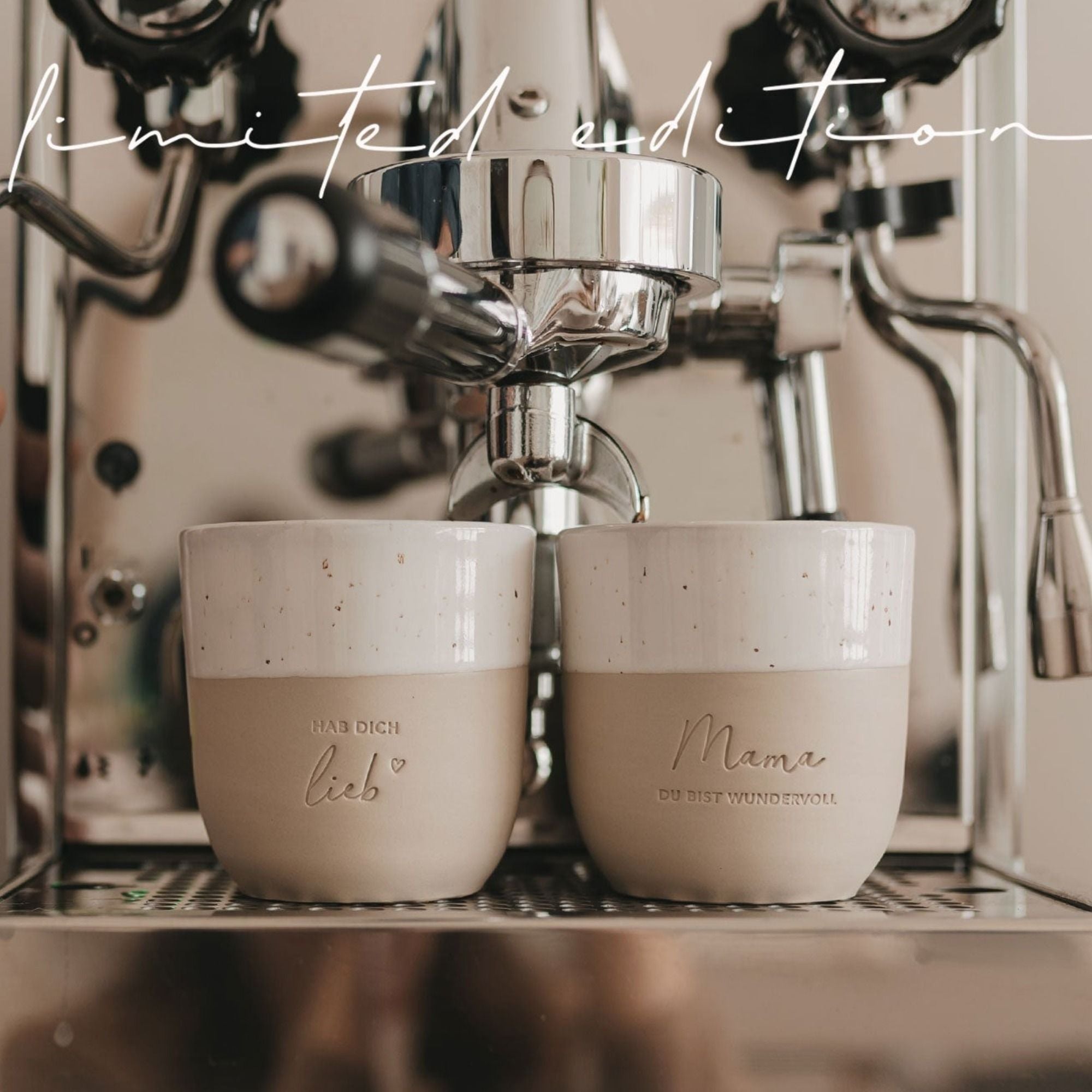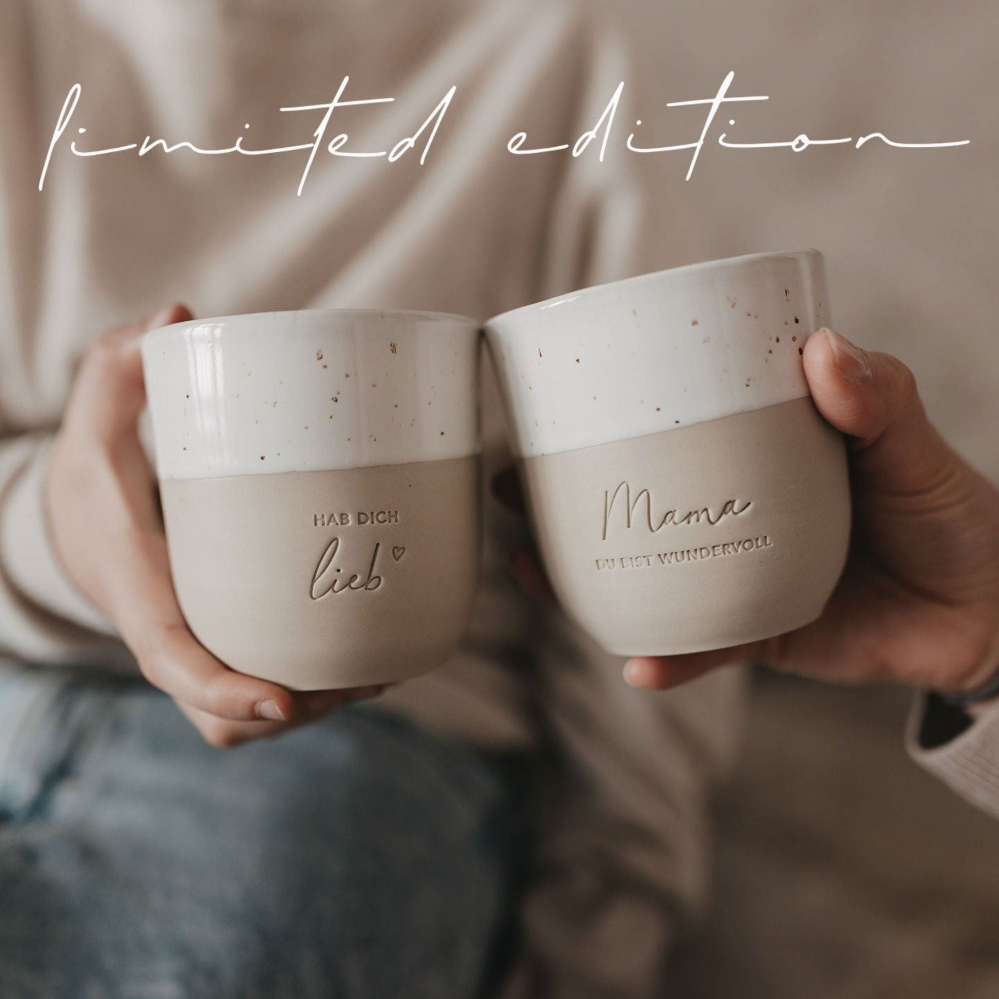 Unsere limitierten Becher "Mama Du bist wundervoll" und "Hab dich lieb" sind eine liebevolle Art, deiner Mama zu zeigen, wie viel sie dir bedeutet. Handgefertigt in Portugal, überzeugt der Becher mit seinem einzigartigen Design und seiner hochwertigen Verarbeitung.