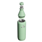 Der Flaschenhals besteht aus einwandigem Edelstahl, der mit einem Kunststoffgewinde und einer komprimierten Dichtung versehen ist. Der Körper besteht aus doppelwandigem, vakuumisoliertem Edelstahl und sorgt dafür, dass die ideale Getränketemperatur erhalten bleibt. Das Stanley-Logo ist in die Flasche eingeprägt und bildet einen perfekten Kontrast zum Übergang von glänzend zu matt.