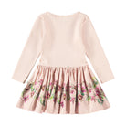 Dieses Langarmkleid aus Bio-Baumwolle hat ein Oberteil das aus einfarbigem Rippstrick besteht. Während der rund geschnittene Rock mit einem farbenfrohen All-Over-Print versehen ist.