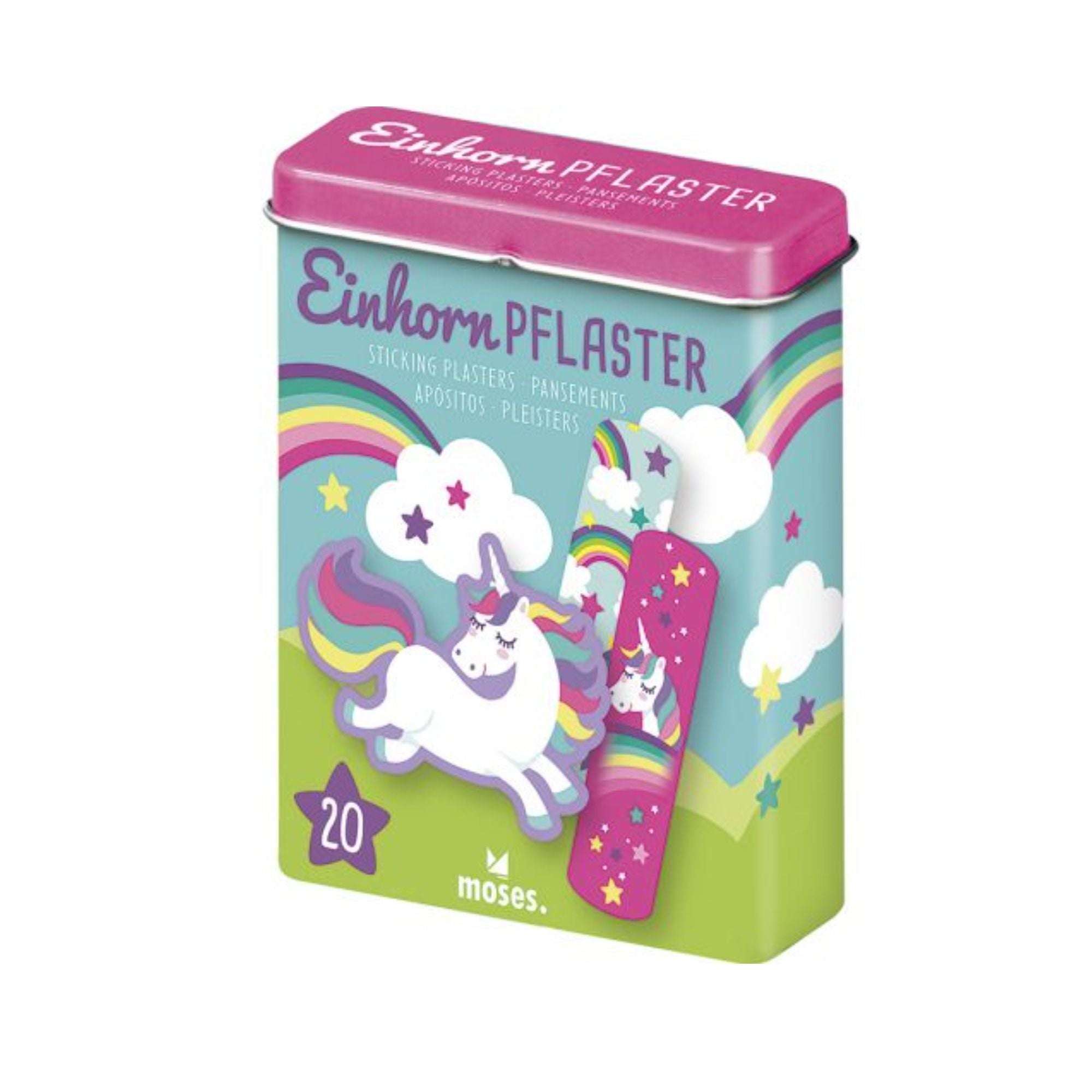 Diese zauberhaften Pflaster sind genau das Richtige für alle Einhorn-Fans. Mit liebevoll gestalteten Motiven in drei verschiedenen Designs bringen sie ein bisschen Magie in den Alltag – und trösten kleine Verletzungen im Handumdrehen. Die 20 elastischen, luftdurchlässigen Pflaster kommen in zwei praktischen Größen und sind sicher in einer hübschen Metalldose verstaut – ideal für unterwegs oder als kleines Geschenk mit großer Wirkung