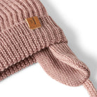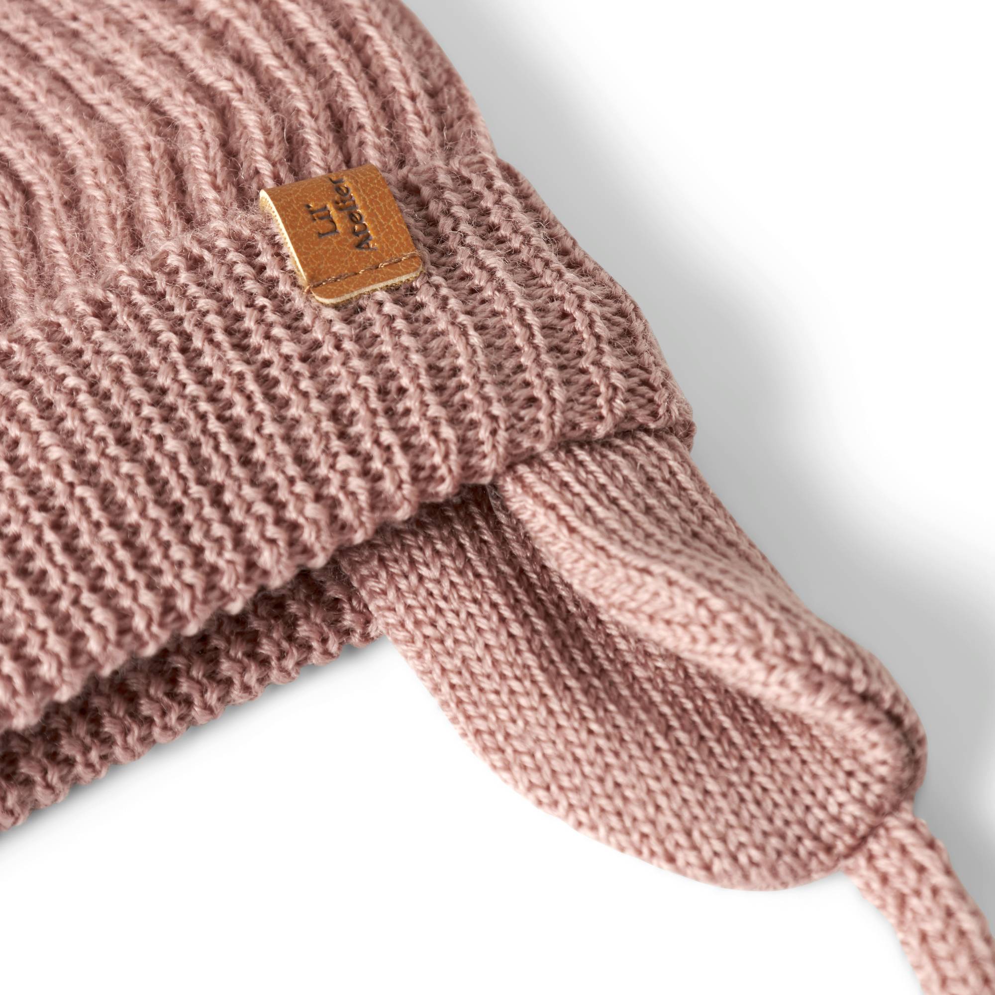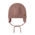 Mit der weichen Strickmütze und den praktischen Bändern um das Kinn hältst du dein Kind warm und sorgst für Komfort.