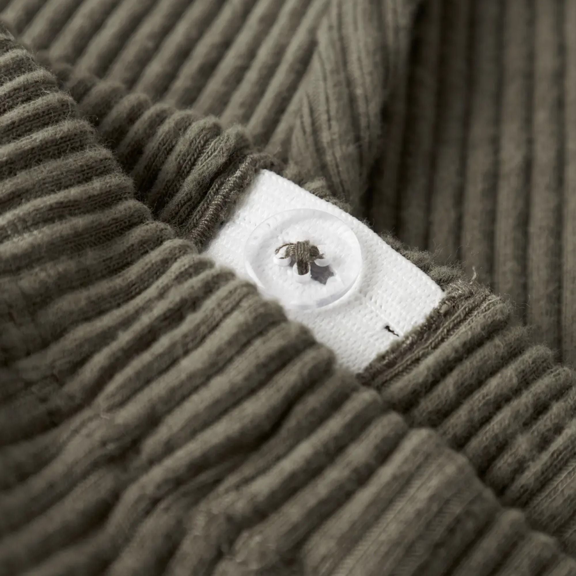 Diese weiche Baby-Cordhose aus reiner Bio-Baumwolle bietet höchsten Tragekomfort und viel Bewegungsfreiheit für kleine Entdecker. Eine aufgesetzte Tasche auf der Vorderseite und feine Zierbänder verleihen der Hose eine liebevolle, verspielte Note. Der elastische Bund mit verstellbarem Gummiband sorgt für einen bequemen Sitz und einfaches Anziehen, perfekt für Alltag, Spielplatz oder gemütliche Stunden zuhause.