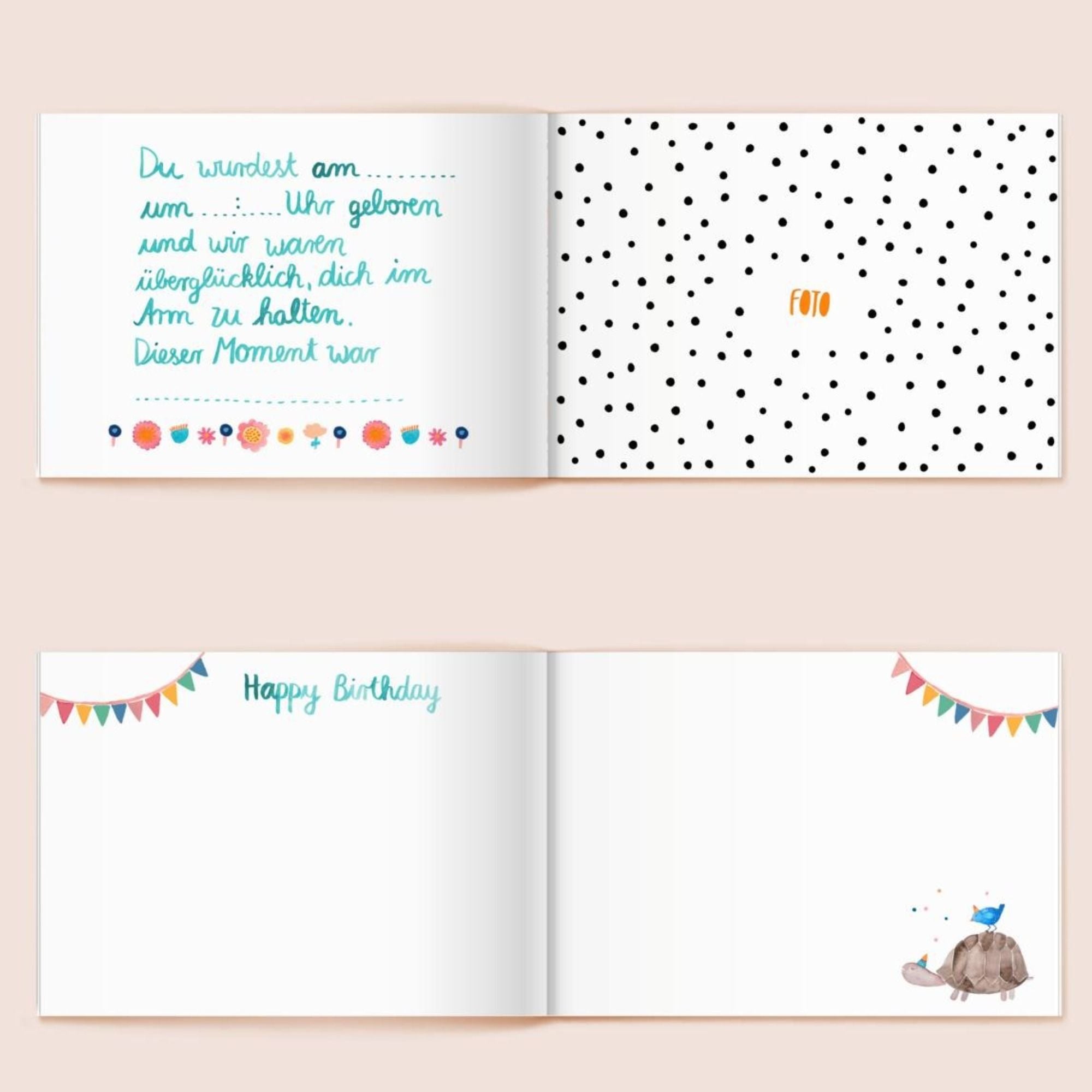 Das Erinnerungsbuch eignet sich als schönes Geschenk zur Geburt und ist sowohl für Mama & Papa, Mama & Mama als auch für Alleinerziehende geeignet.