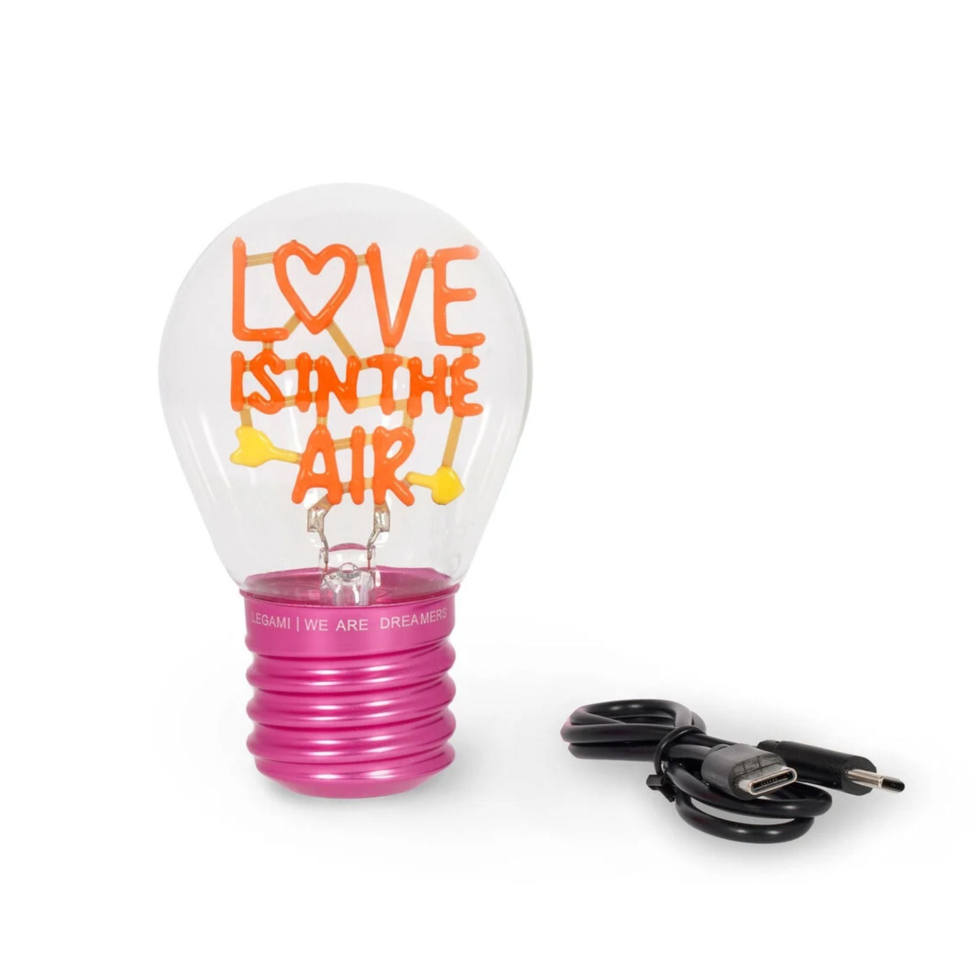 Die Deko-Tischlampe in Glühbirnenform Bulb Fiction – Love Is in the Air von Legami verbindet einzigartiges Design mit romantischem Flair. Ihr leuchtender Glühfaden in Herzform sorgt für eine stimmungsvolle Beleuchtung und setzt stilvolle Akzente auf jedem Schreibtisch. Die kabellose Lampe ist wiederaufladbar über das mitgelieferte Typ-C-Kabel und eignet sich perfekt als Geschenk zum Valentinstag oder als dekoratives Highlight, das zeigt, dass dein Herz offen und bereit für die große Liebe ist.