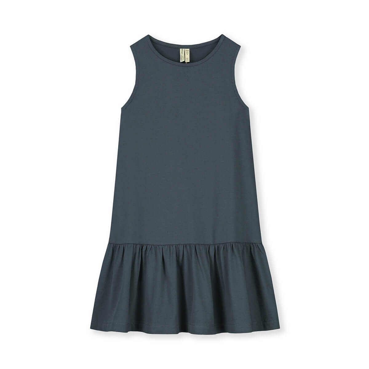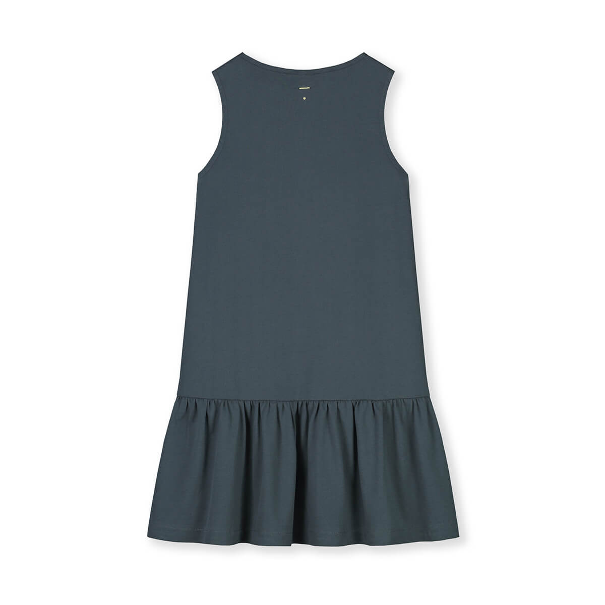 Dieses A-Linien-Kleid ist mit einem Rüschen-Saum und aus unserem weichen Bio-Baumwoll-Jersey. Mit ärmellosem Design und lockerer Passform, die unterhalb der Knie endet. Das Logo ist auf der Rückseite, knapp unterhalb des Halses, gestickt.