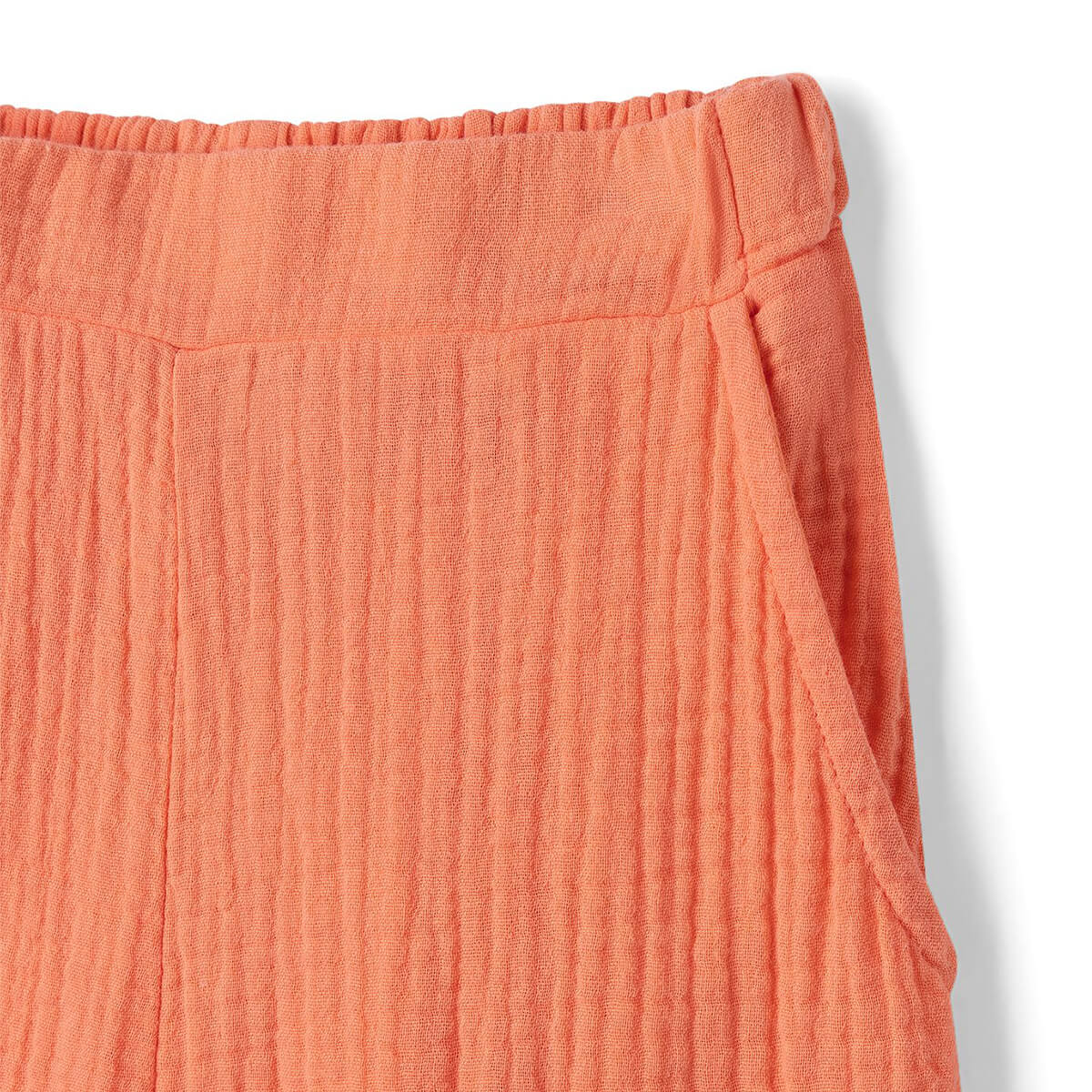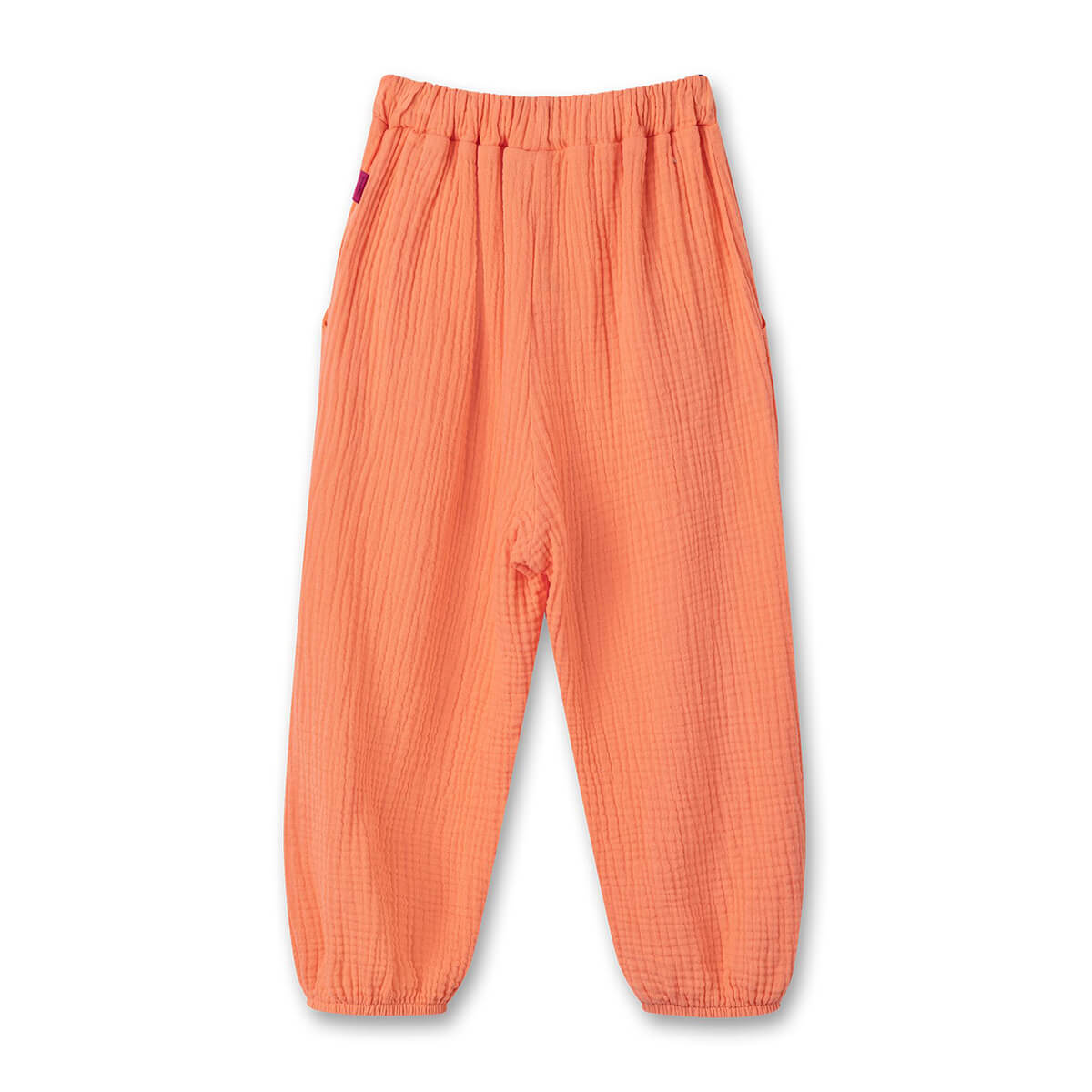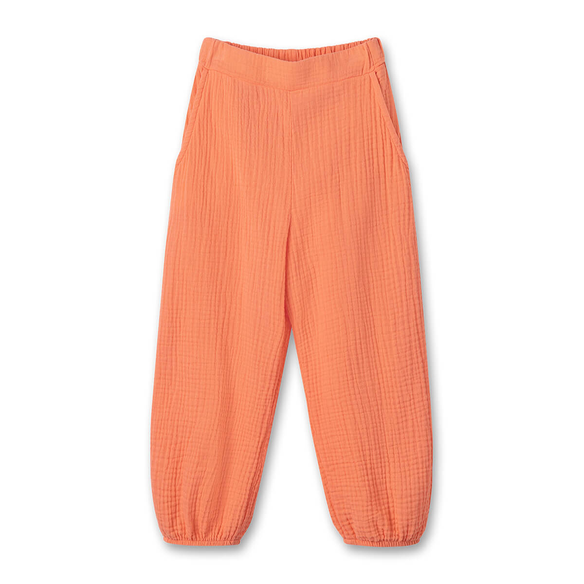 Die bezaubernde Hose aus Musselin ist in einem schönen Orange und in einer breiten sommerlichen Schnittform gearbeitet und gibt ein angenehm zu tragendes Gefühl durch die Musselin-Qualität aus 100% Bio Baumwolle.