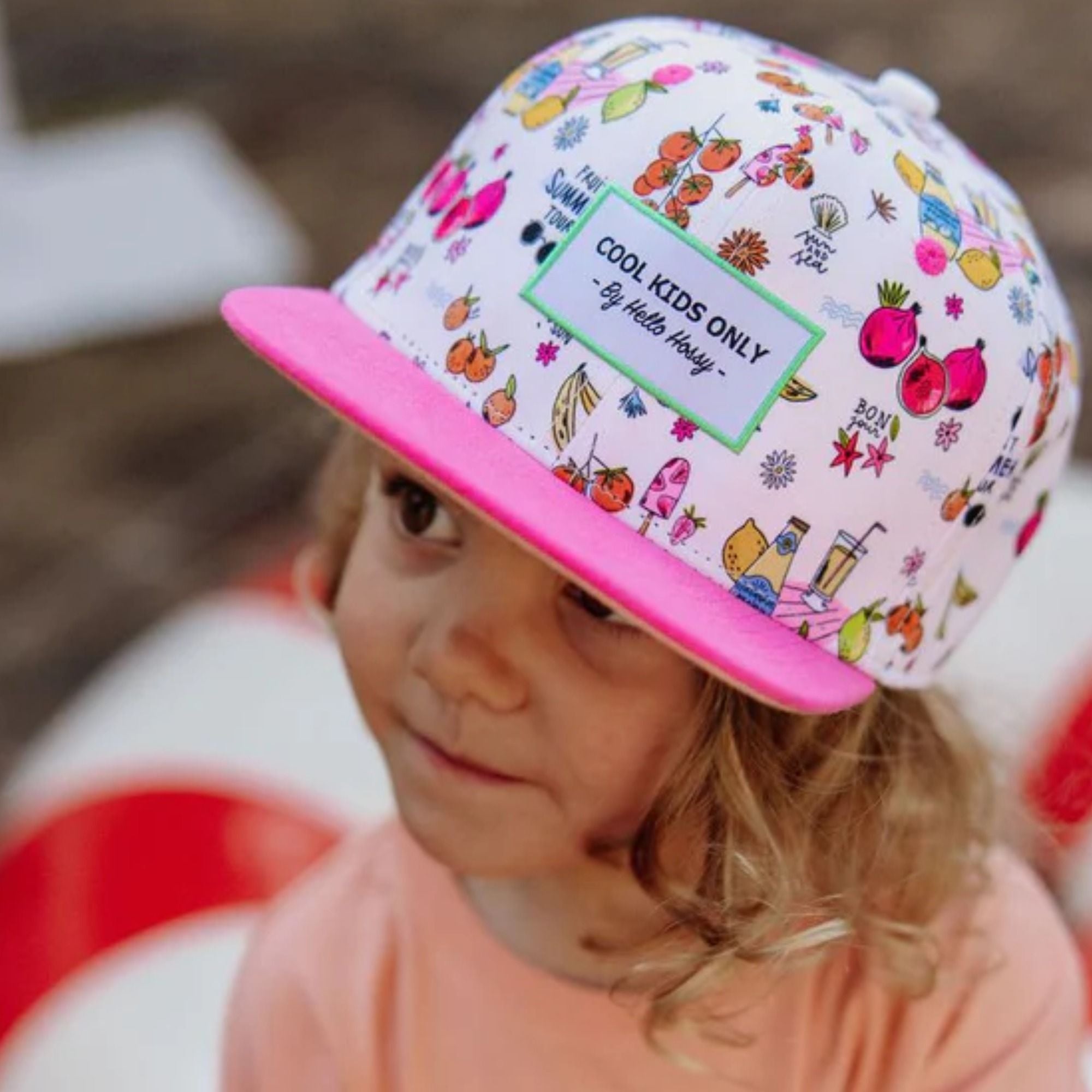 Die gemusterten Kappen von Hello Hossy sind mehr als nur ein Sonnenschutz – sie sind ein echtes Statement. Mit ihren kreativen All-Over-Prints und dem spritzigen Farbmix bringen sie sofort gute Laune in jeden Tag. Dieses hochwertige Vollstoff-Modell (ohne Netz-Einsatz) besticht durch ein modernes Design und den ikonischen „Cool Kids Only“-Patch.