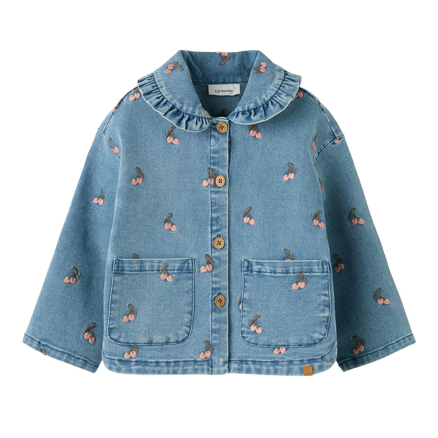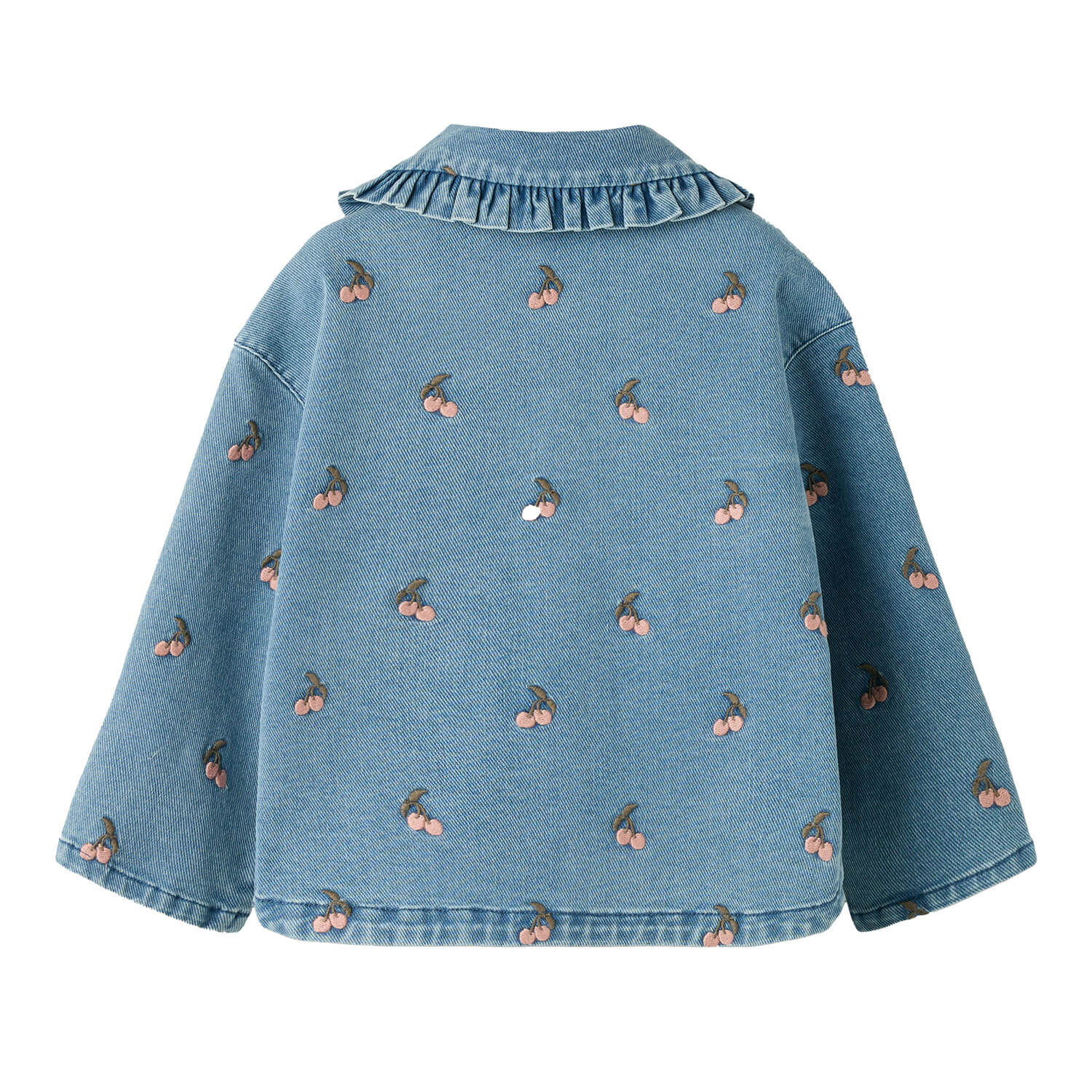 Diese süße Langarmbluse aus weichem Jeansstoff aus Bio-Baumwolle ist ein echtes Lieblingsstück für stilvolle Alltagslooks. Die zarte All-Over-Stickerei verleiht der Bluse eine verspielte Note, während der Muschelkragen Kragen und die Holzknöpfe für einen charmanten, kindgerechten Look sorgen.