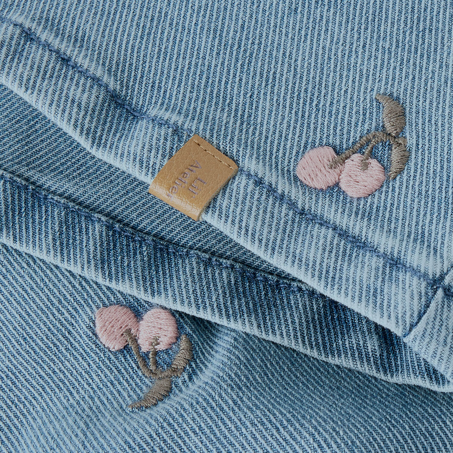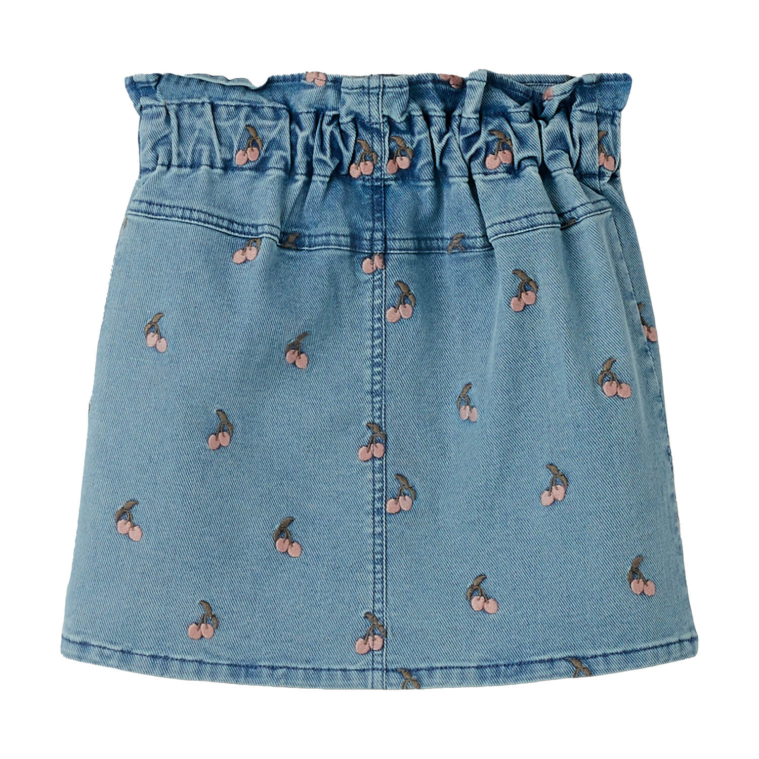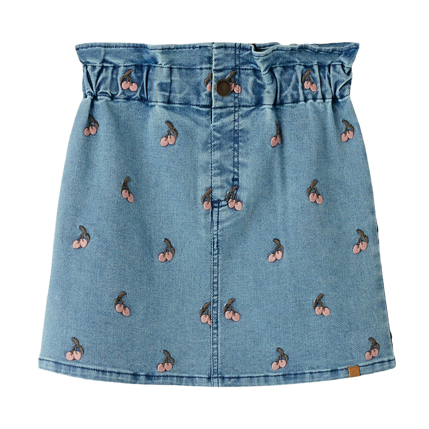 Die Jeans-Struktur fühlt sich angenehm weich an und liegt sanft auf der Haut, während die gestickten Kirschen dem Look eine fröhliche, kindliche Note verleiht. Zwei praktische Taschen vorne runden das Design ab und machen den Rock zum idealen Begleiter für Alltag, Kindergarten oder besondere Anlässe.